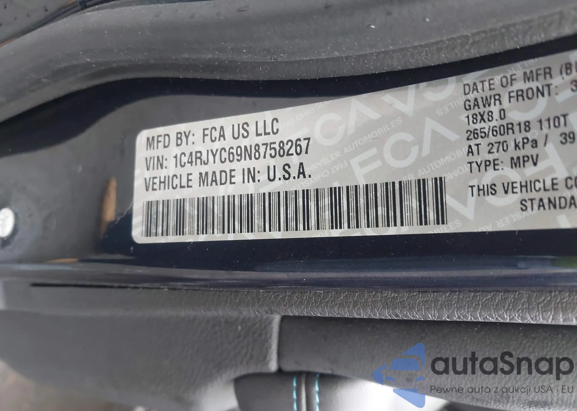 • VIN 1C4RJYC69N8758267
