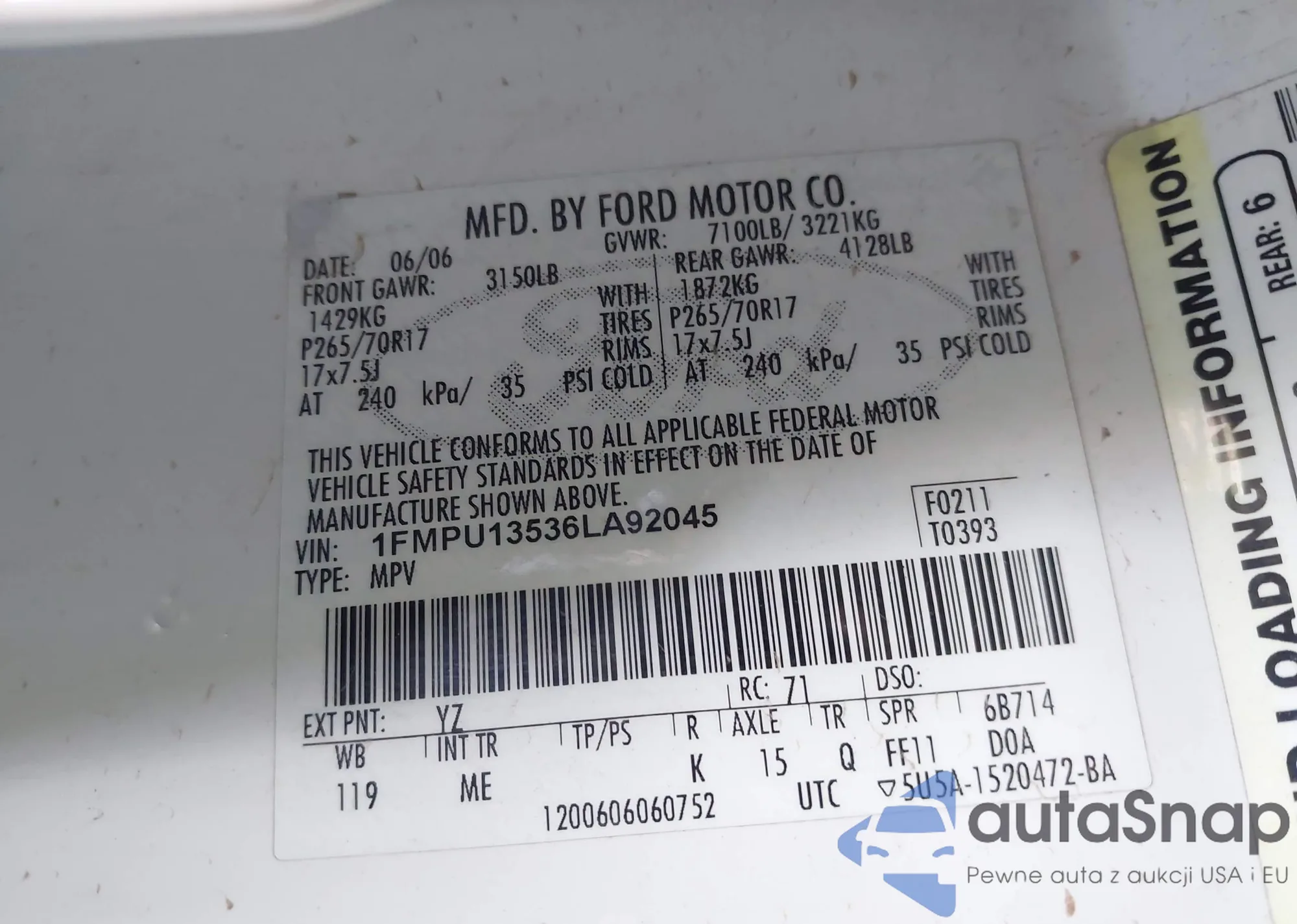 LOT: 43525815 VIN: 1FMPU13536LA92045