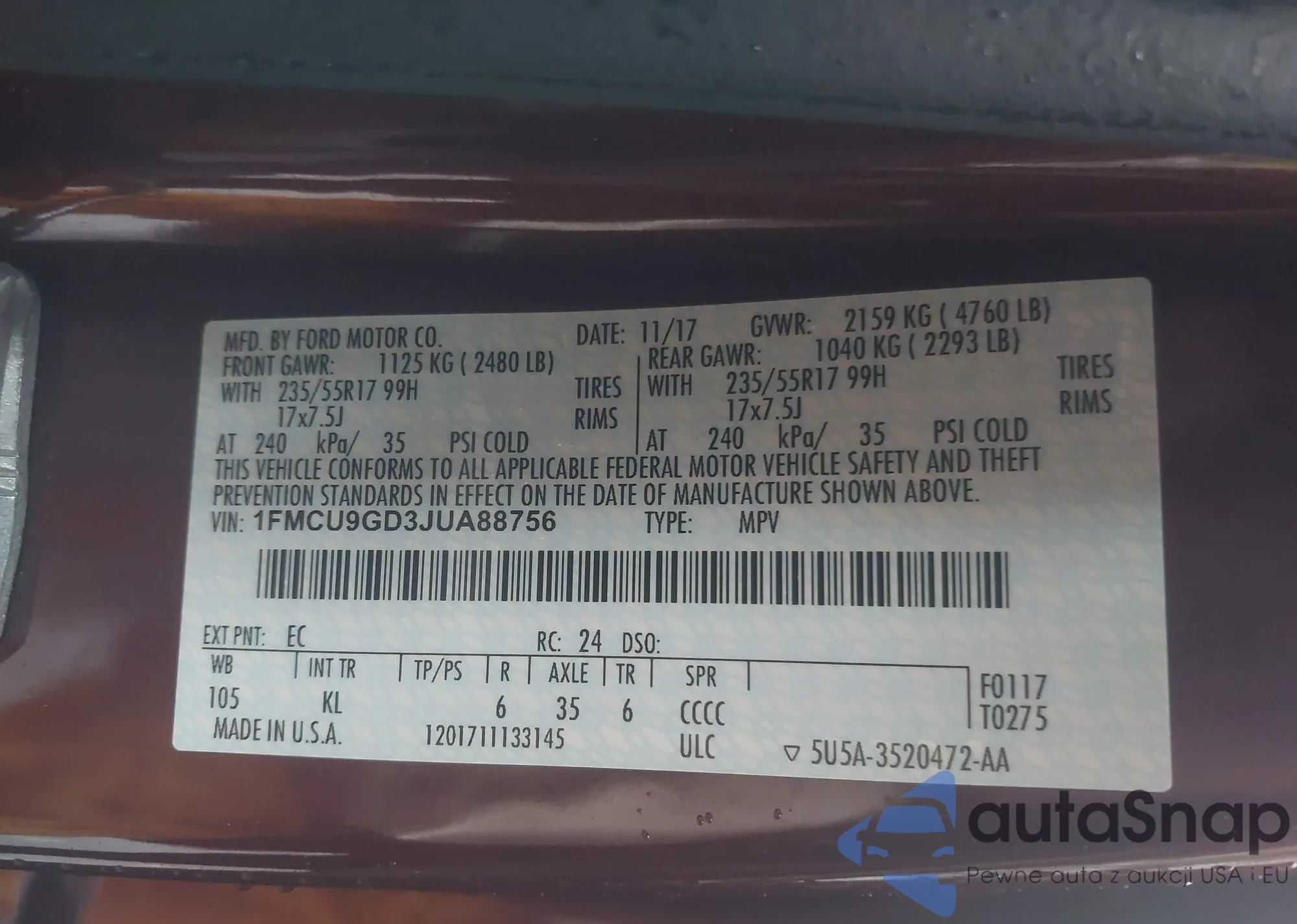 • VIN 1FMCU9GD3JUA88756