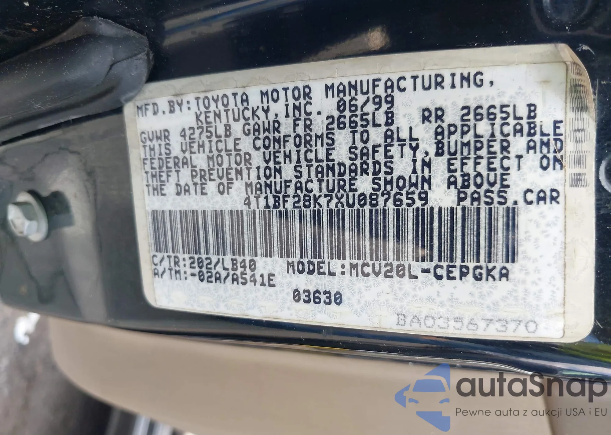 LOT: 42281476 VIN: 4T1BF28K7XU087659