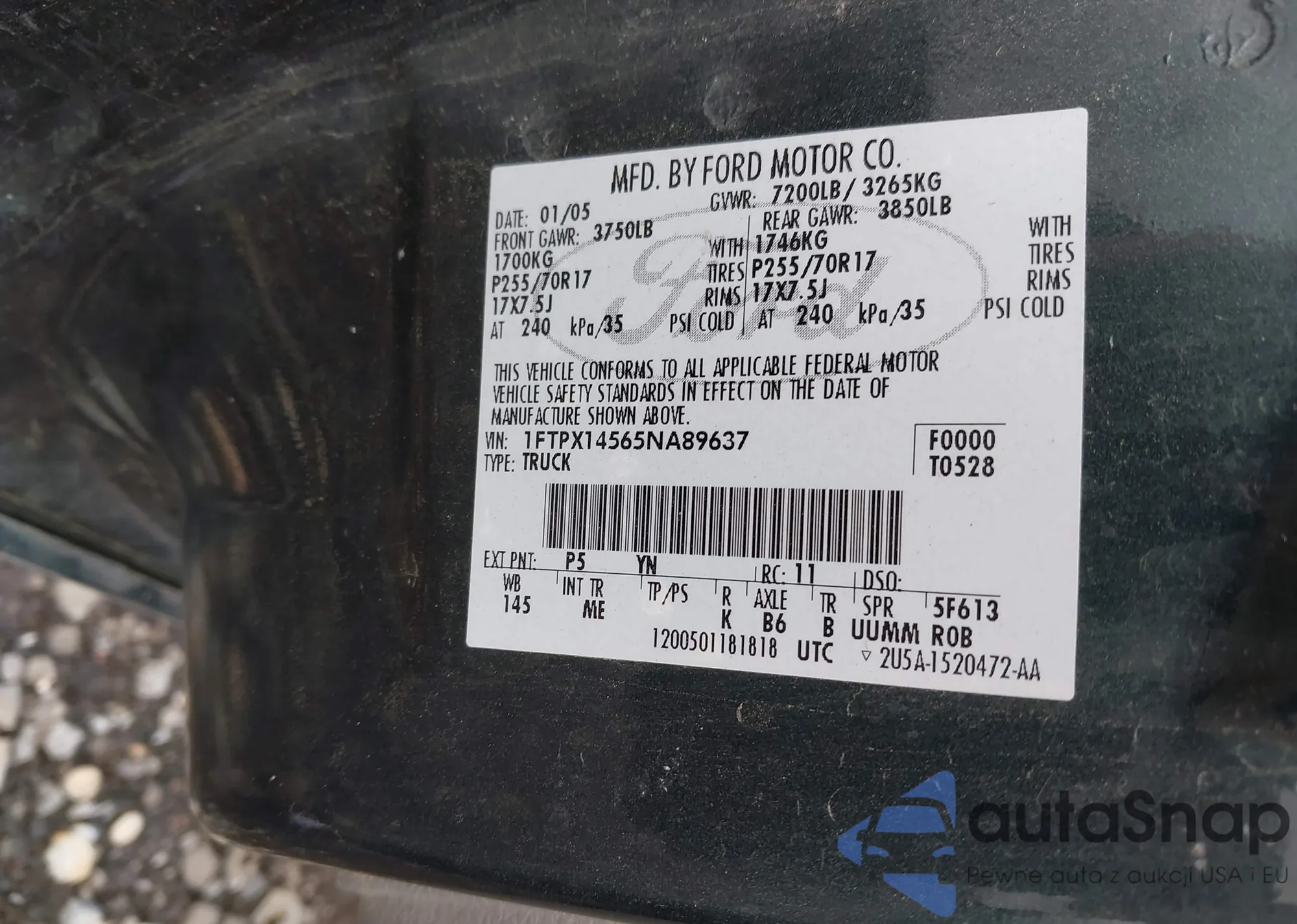 LOT: 43389572 VIN: 1FTPX14565NA89637