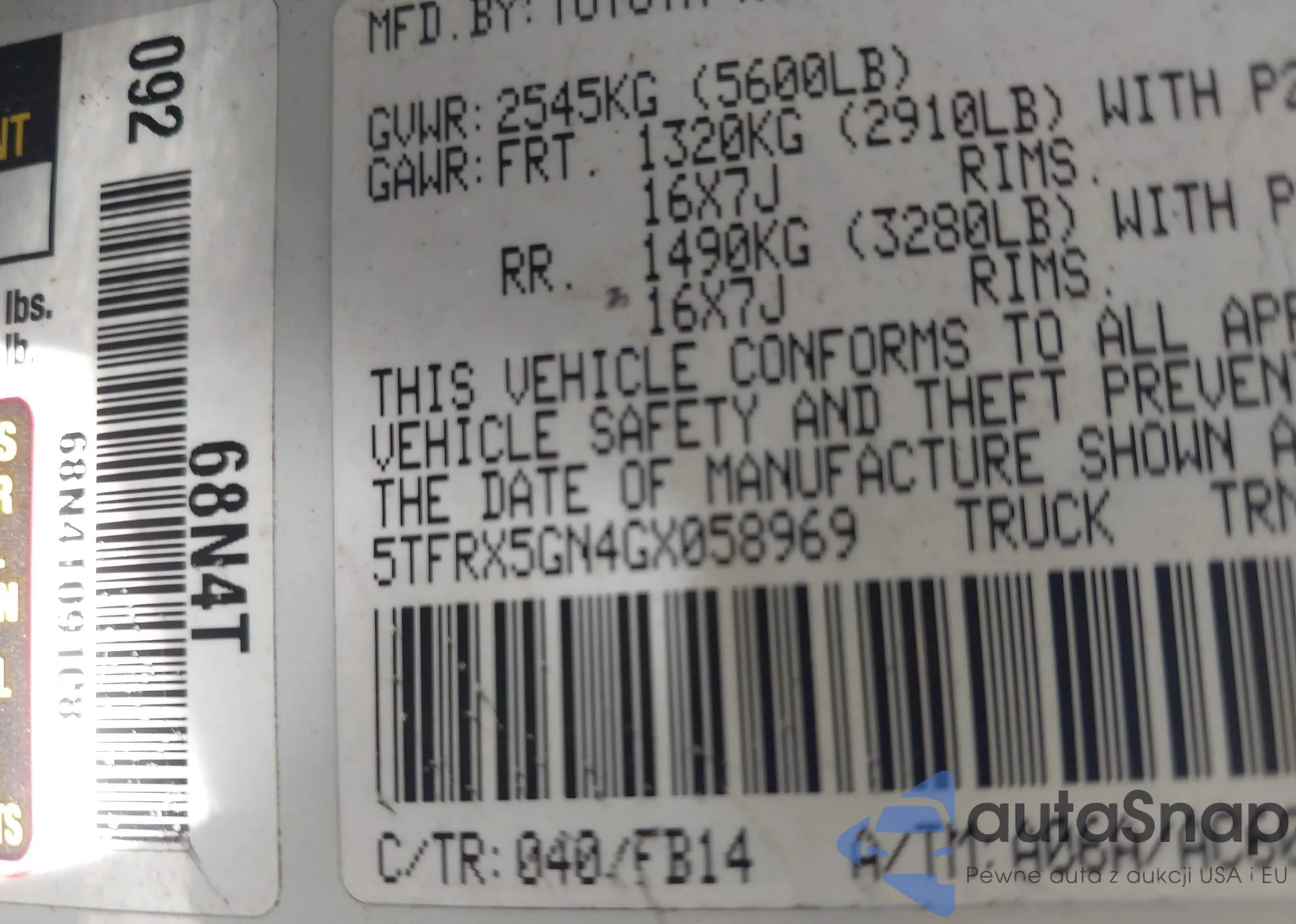 • VIN 1FTPX14565NA89637