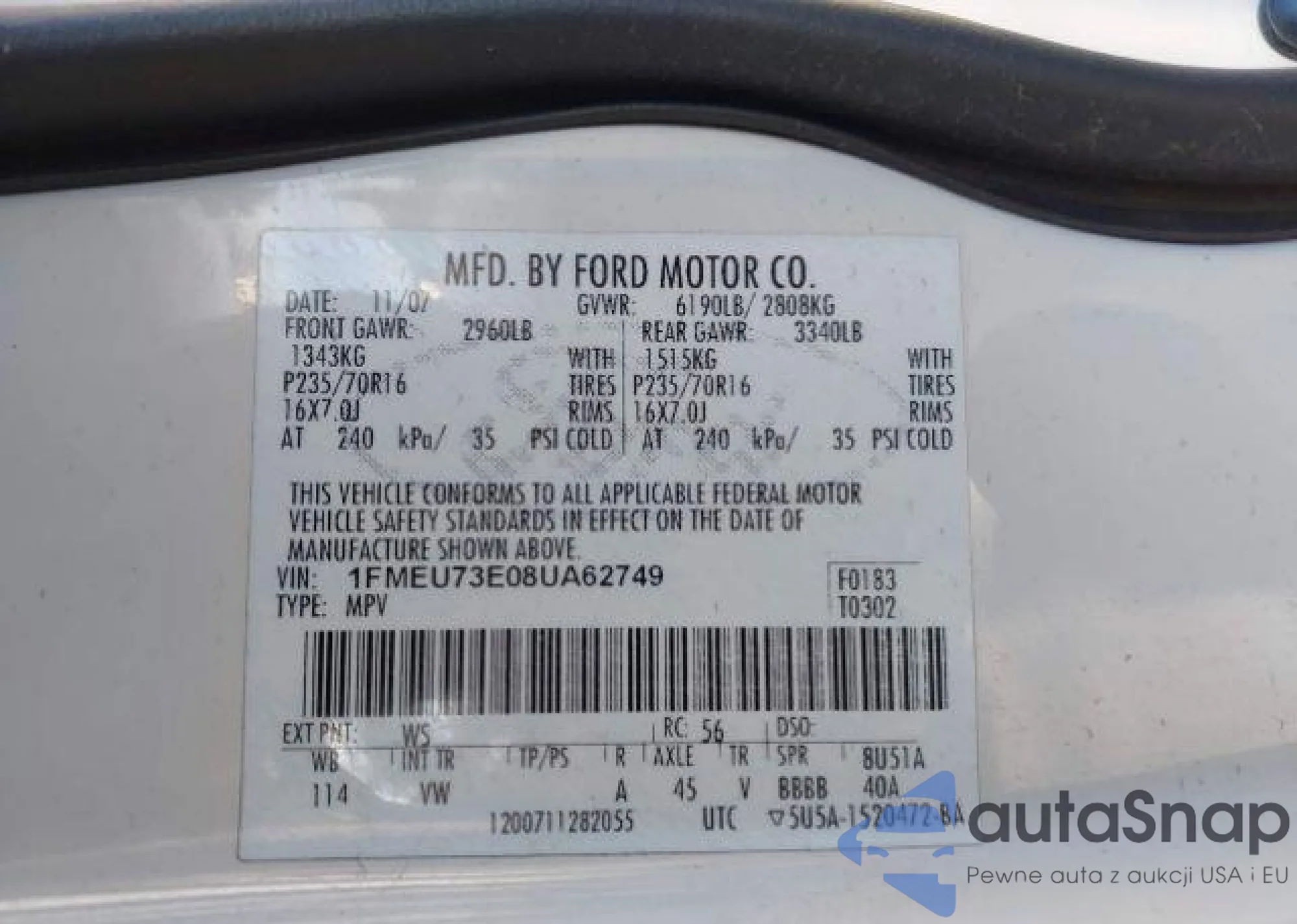 • VIN 1FMEU73E08UA62749