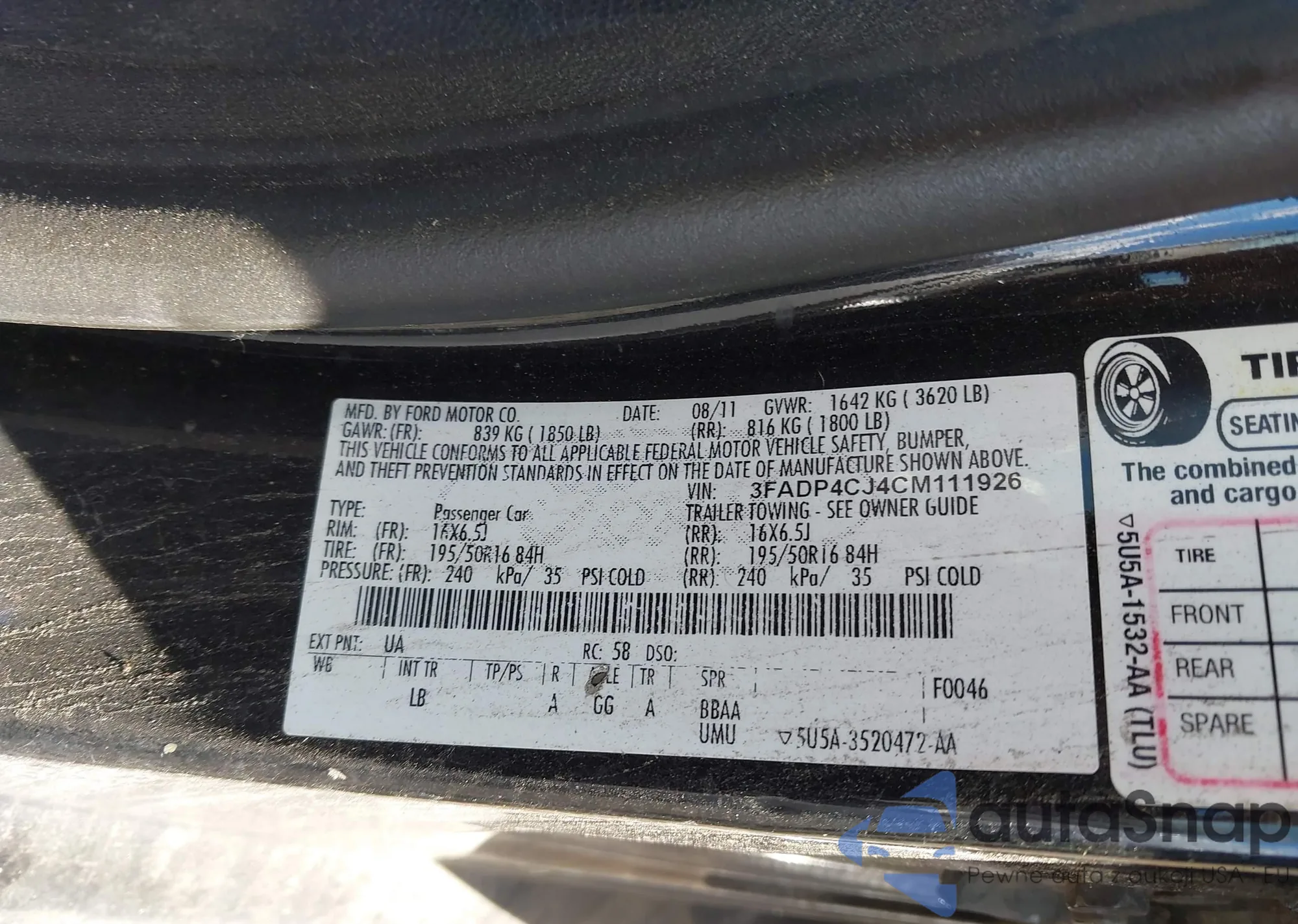 • VIN 1HGCP2F32CA242715
