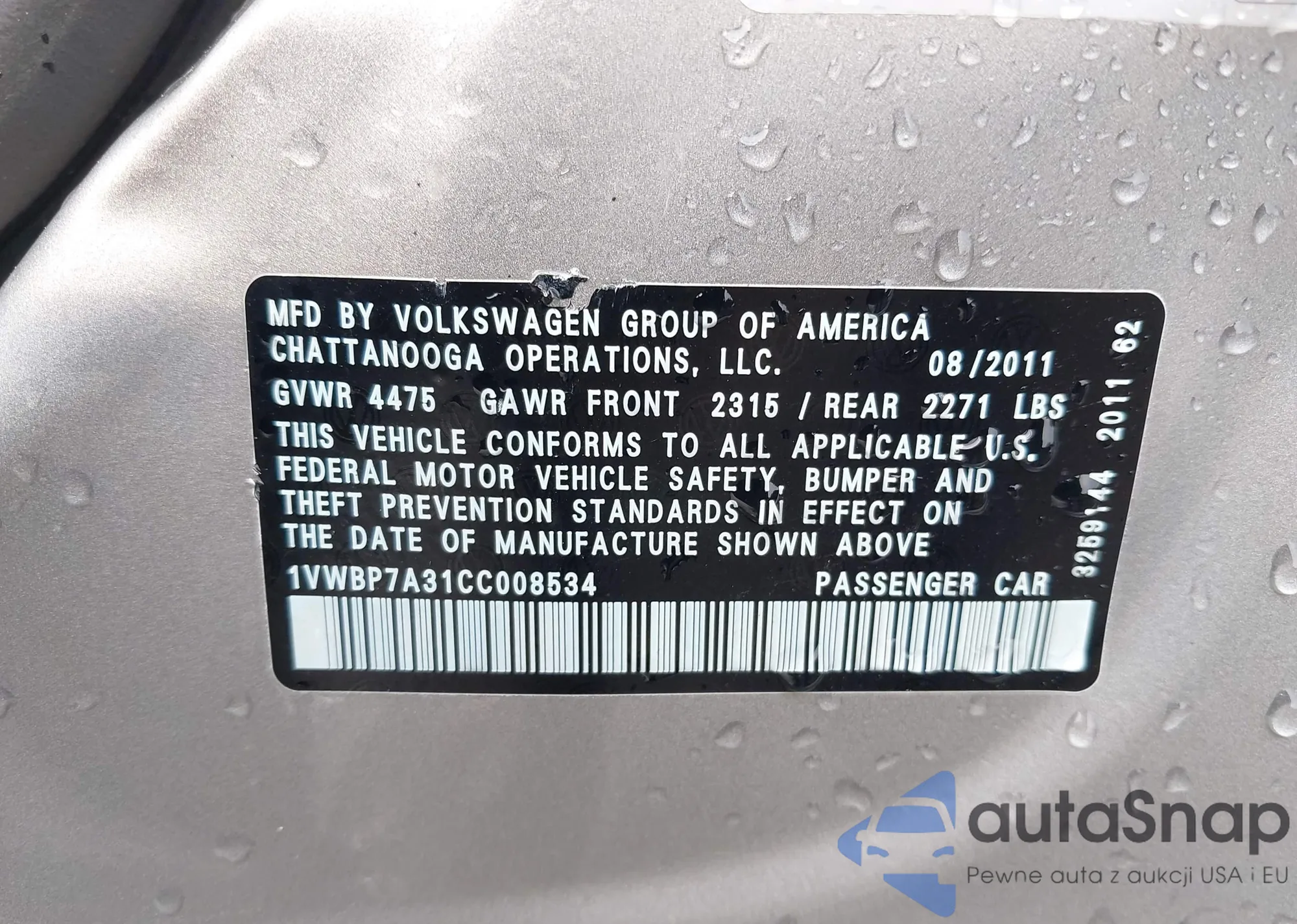 • VIN 1VWBP7A31CC008534