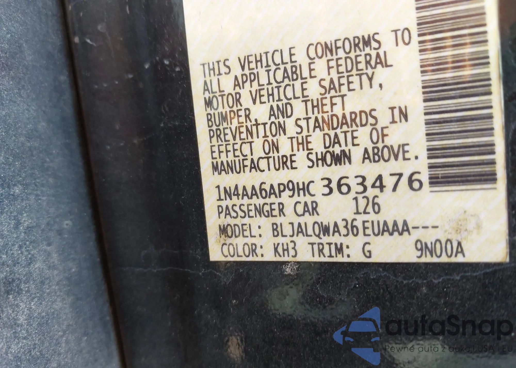 • VIN 1N4AA6AP9HC363476
