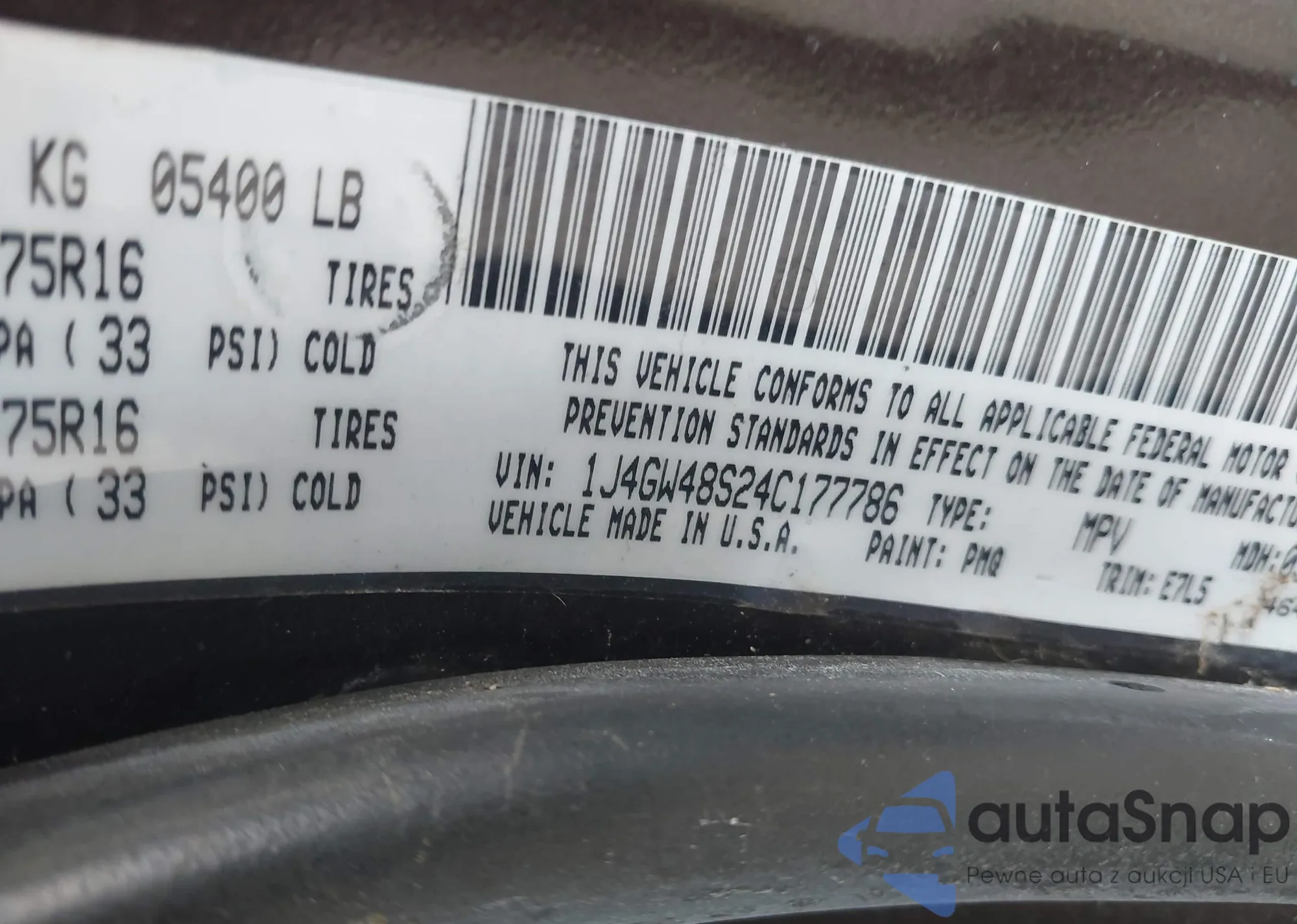LOT: 43485613 VIN: 1J4GW48S24C177786
