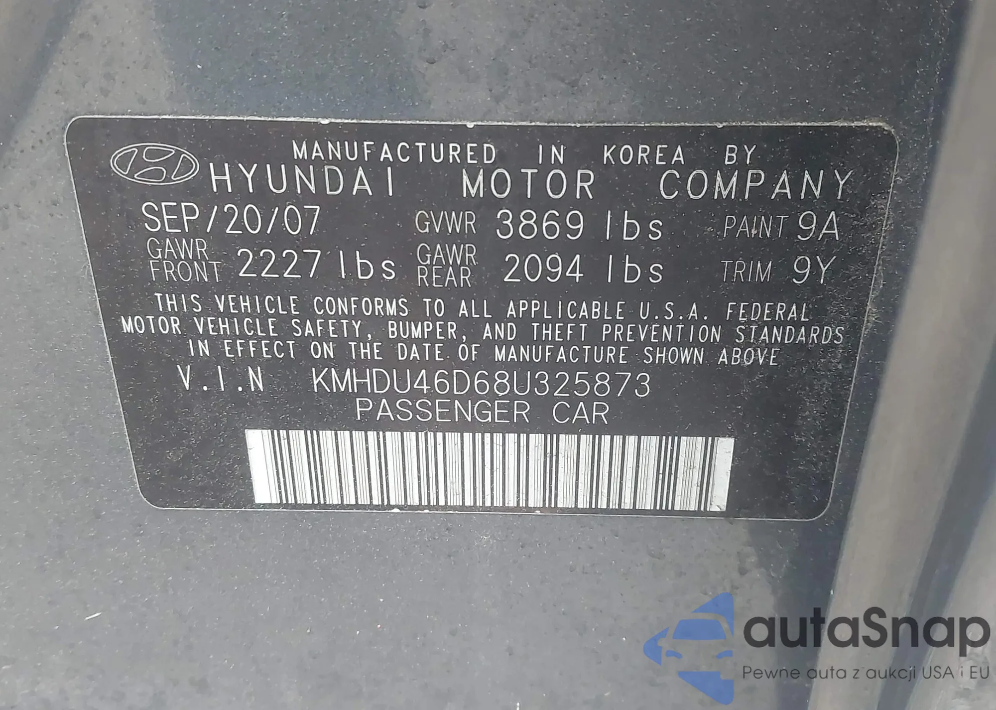 • VIN KMHDU46D68U325873