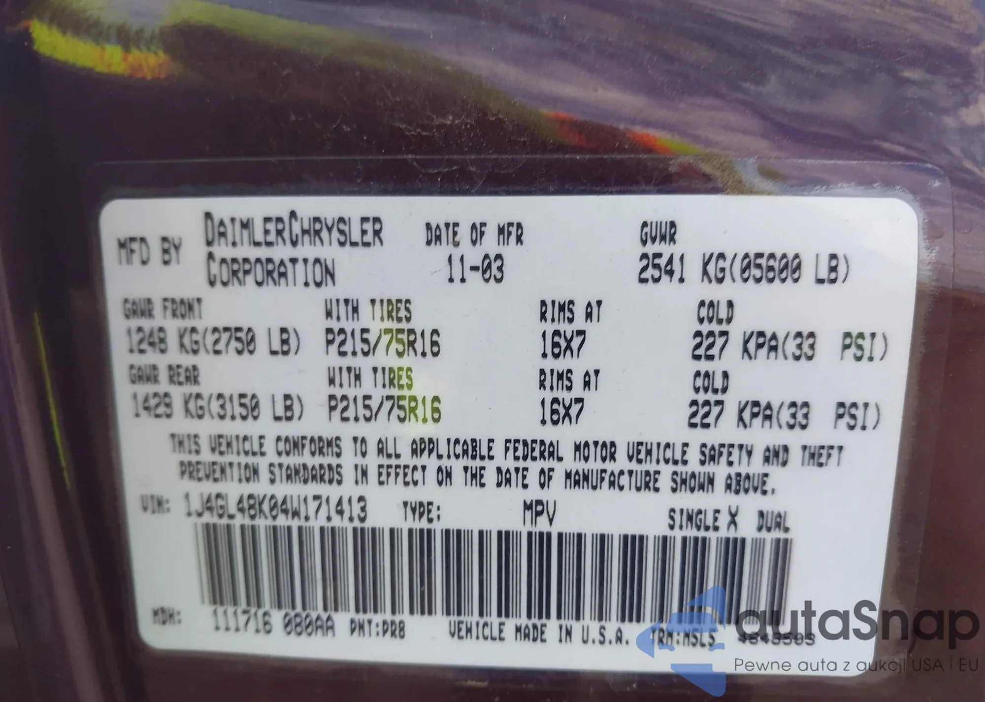 LOT: 43594805 VIN: 1J4GL48K04W171413
