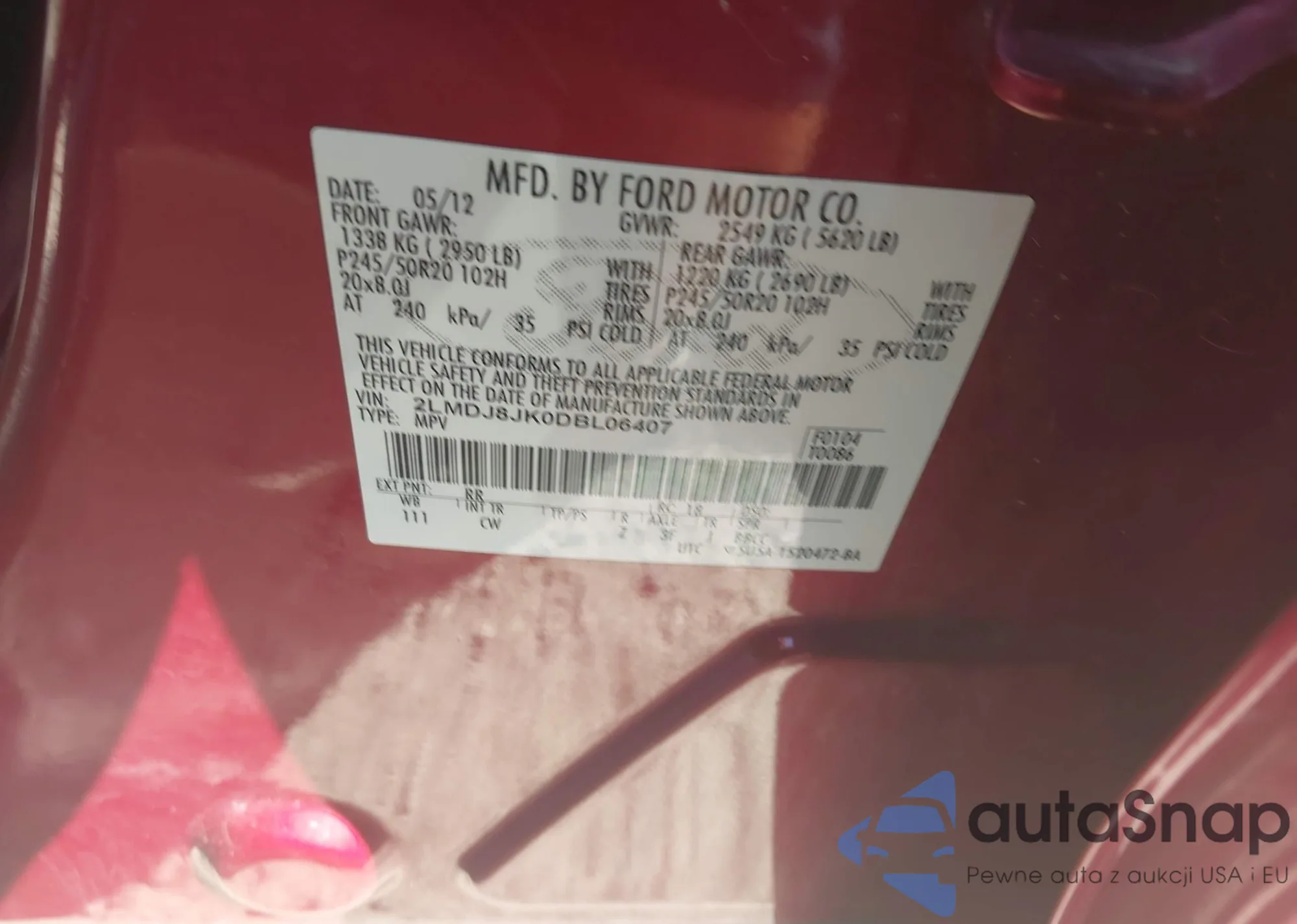 • VIN 2LMDJ8JK0DBL06407