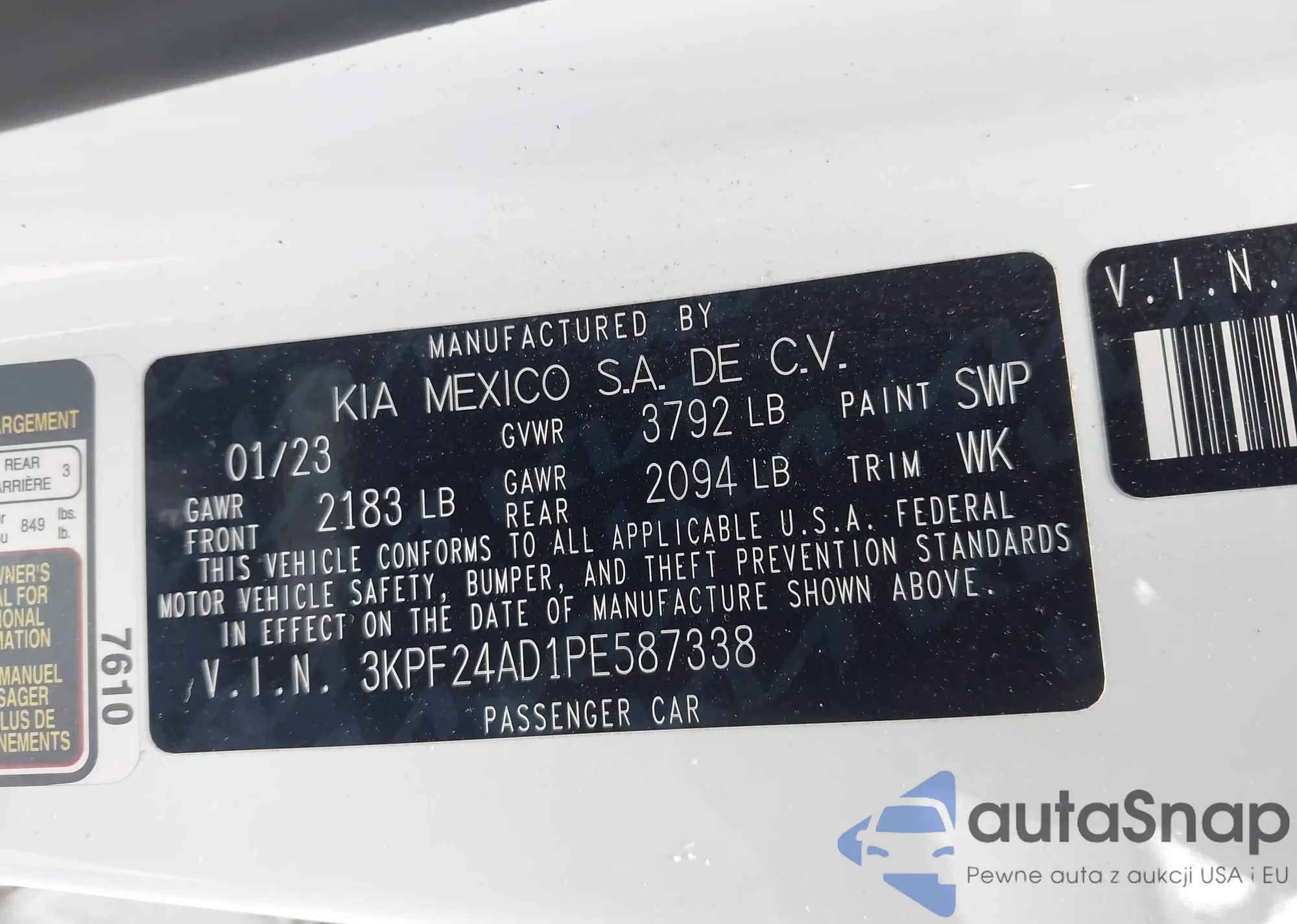 LOT: 43181788 VIN: 3KPF24AD1PE587338