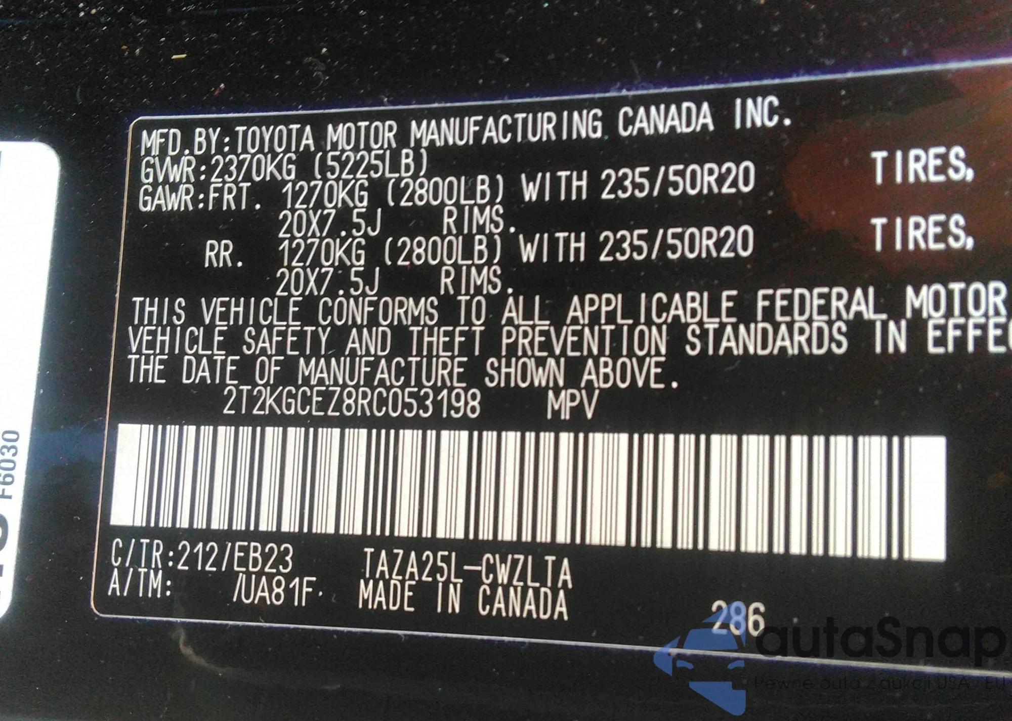 • VIN 2T3K1RFV4NW229605