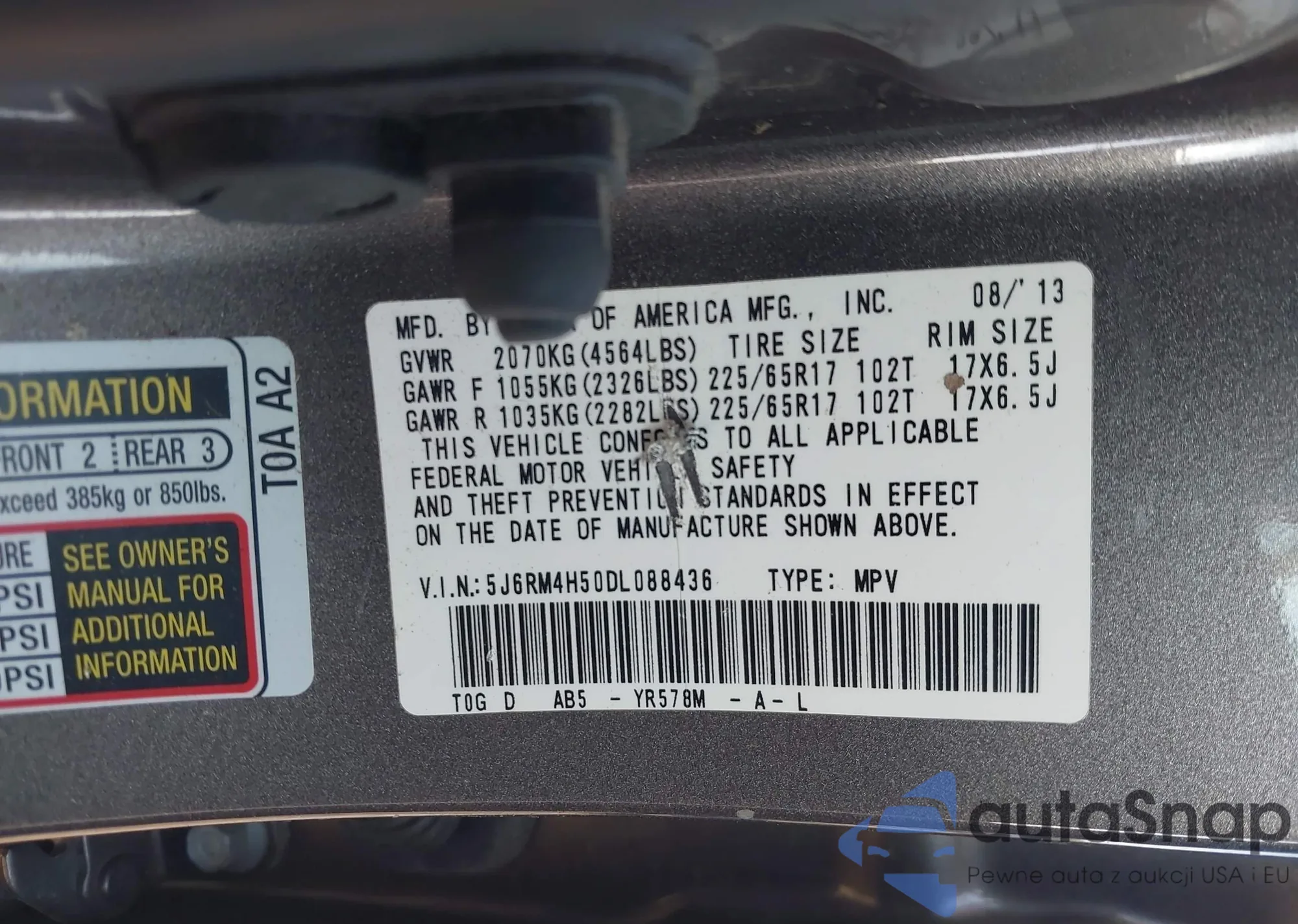 LOT: 43175190 VIN: 2LMDJ8JK0DBL06407