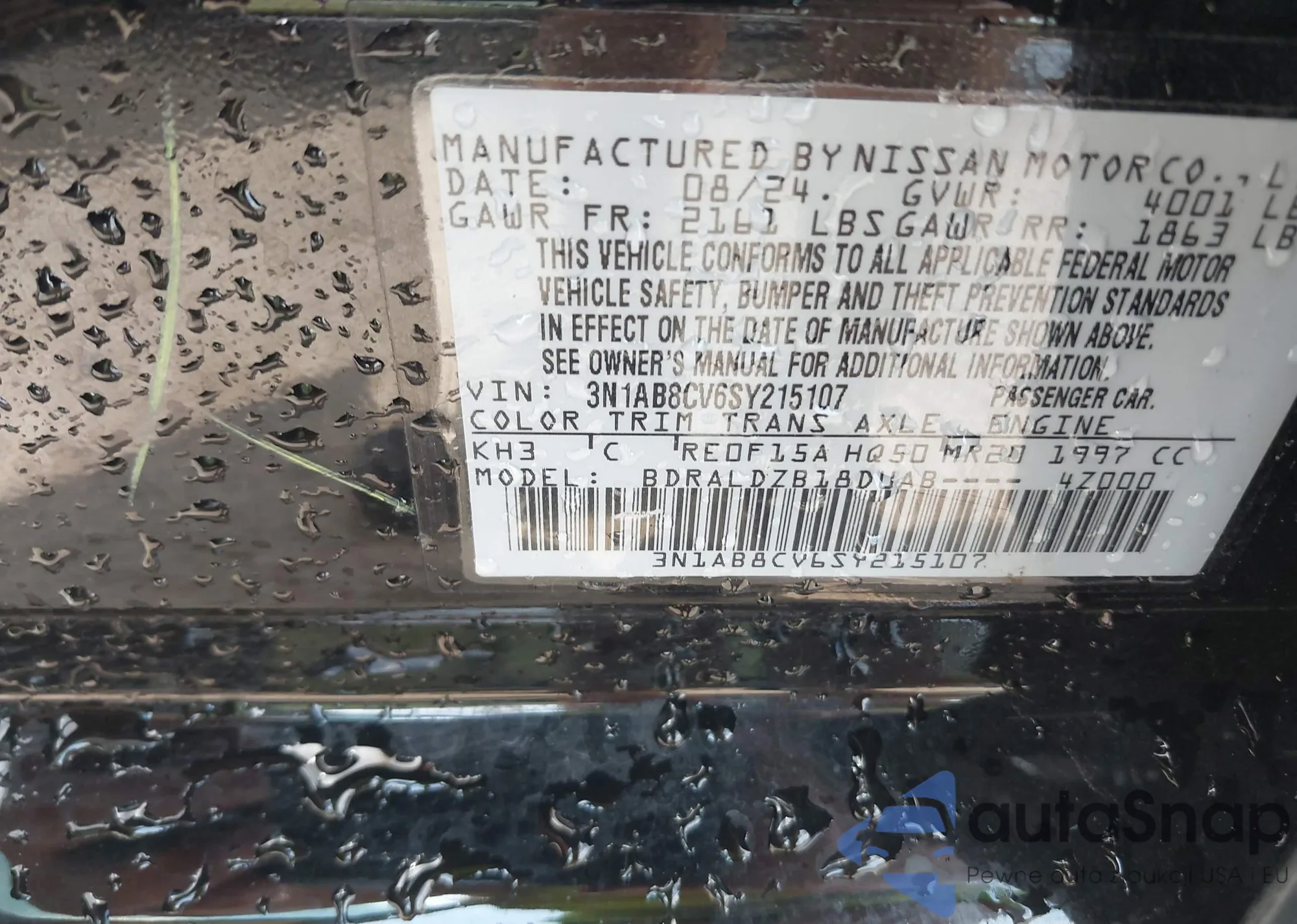 • VIN 3N1AB8CV6SY215107