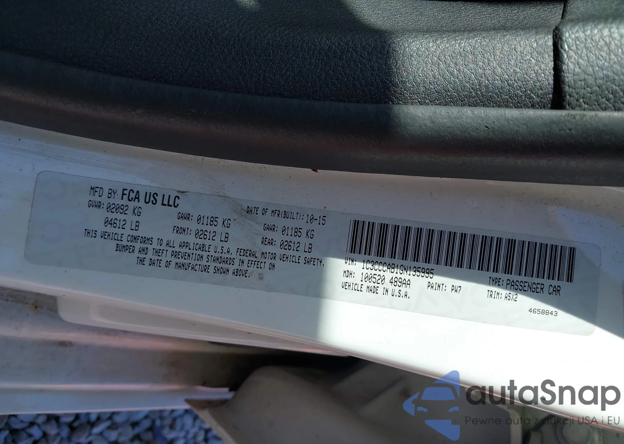 LOT: 43218177 VIN: 1C3CCCAB1GN135995