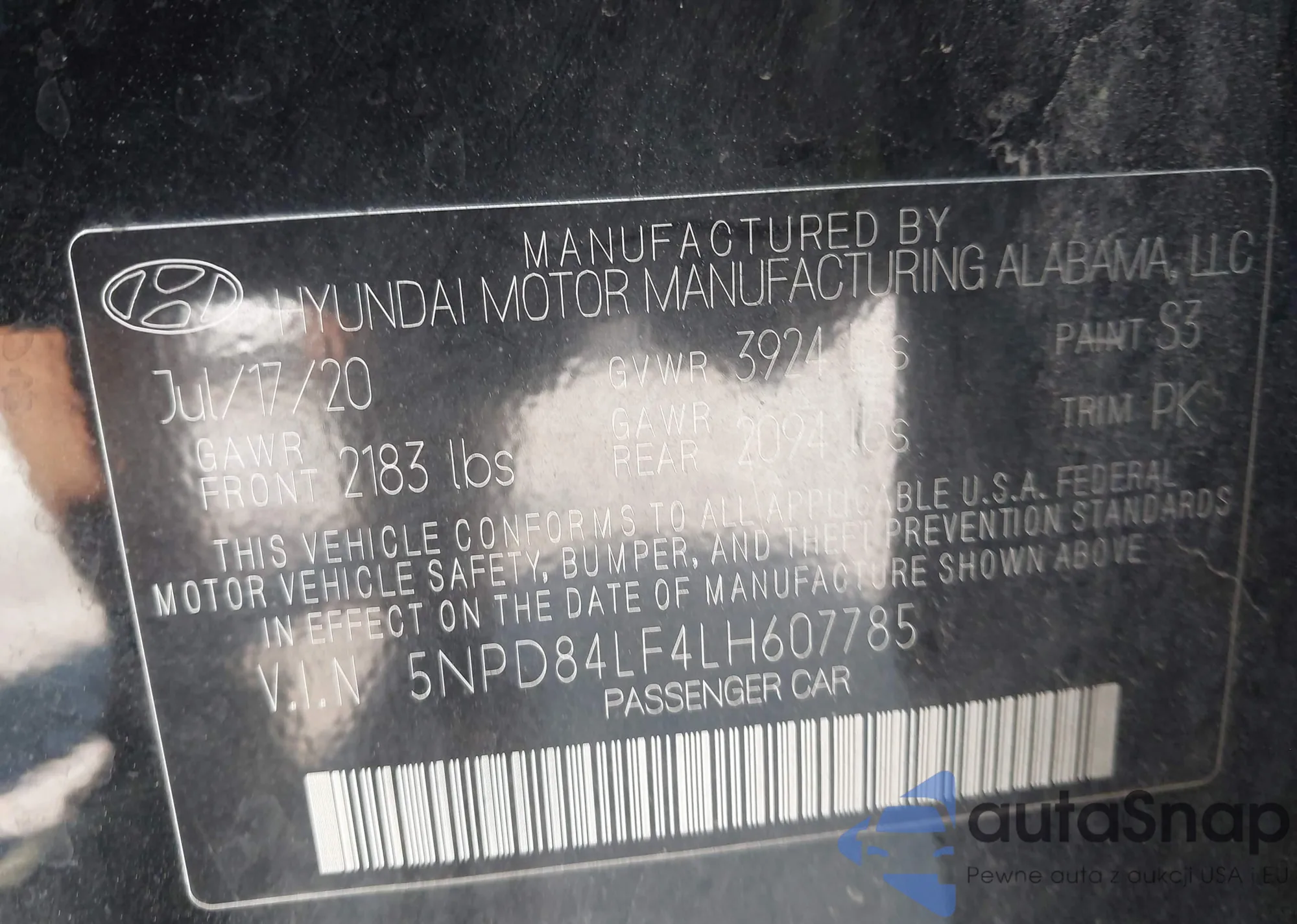 • VIN 5NPD84LF4LH607785