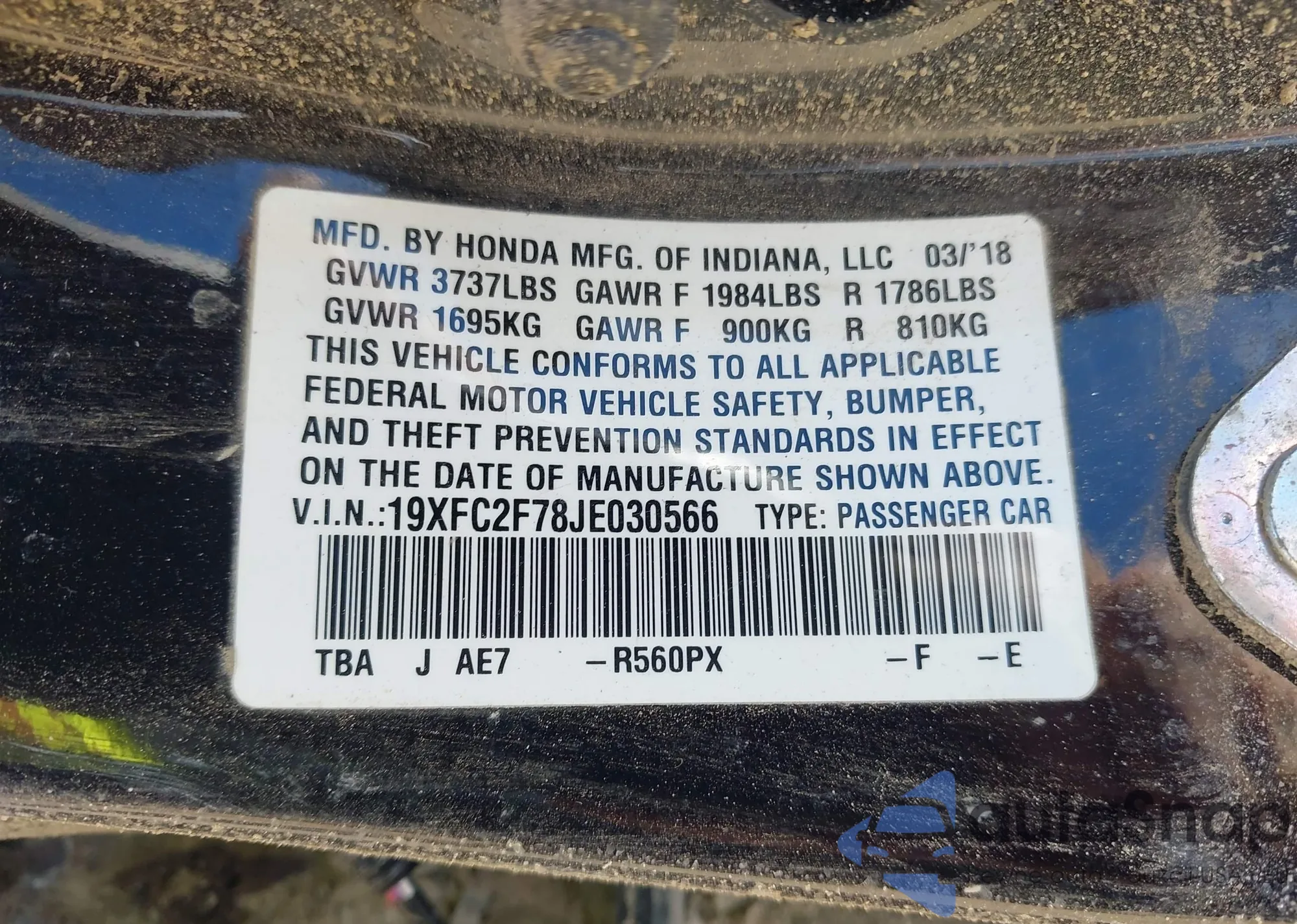 • VIN 19XFC2F78JE030566