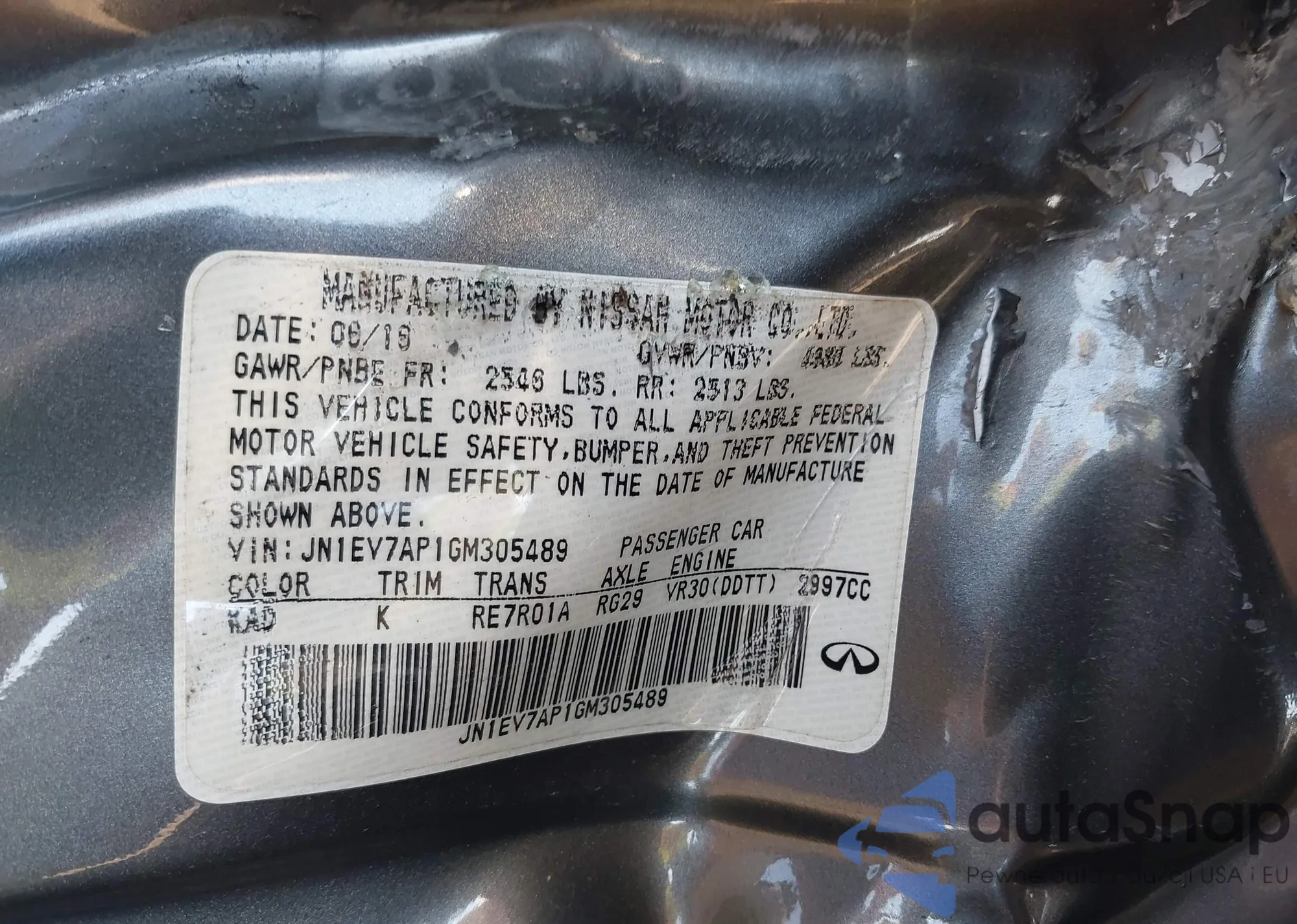 LOT: 43248146 VIN: JN1EV7AP1GM305489