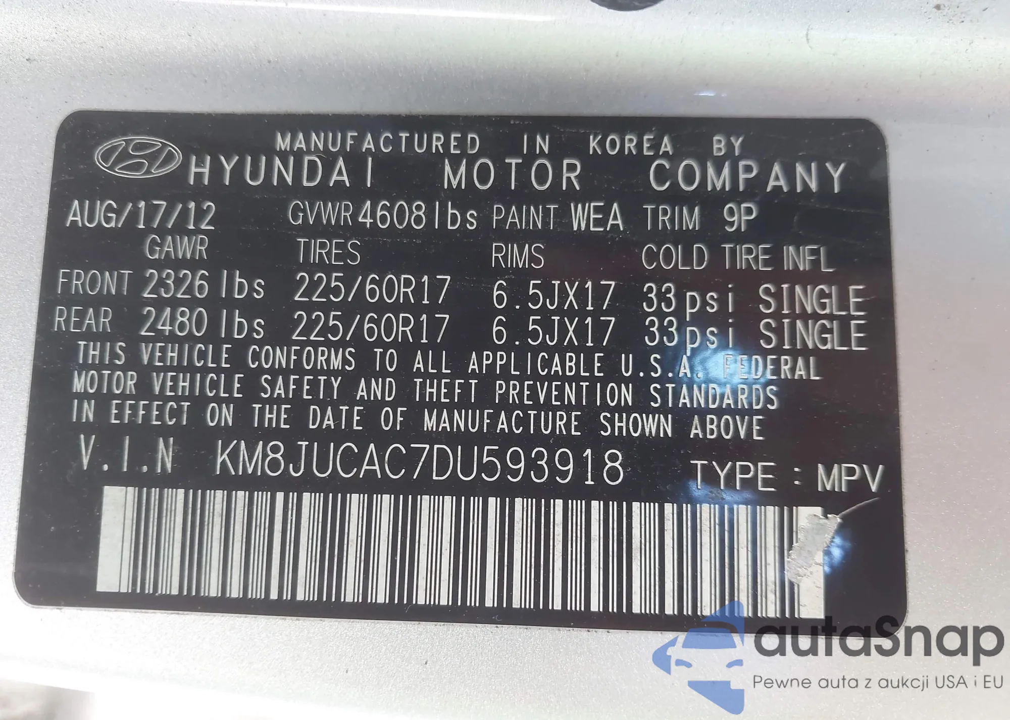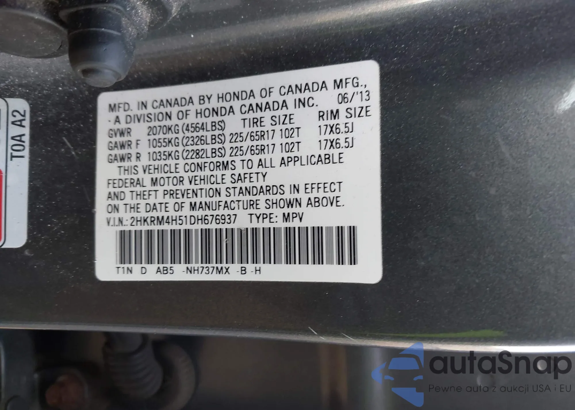 • VIN 2HKRM4H51DH676937