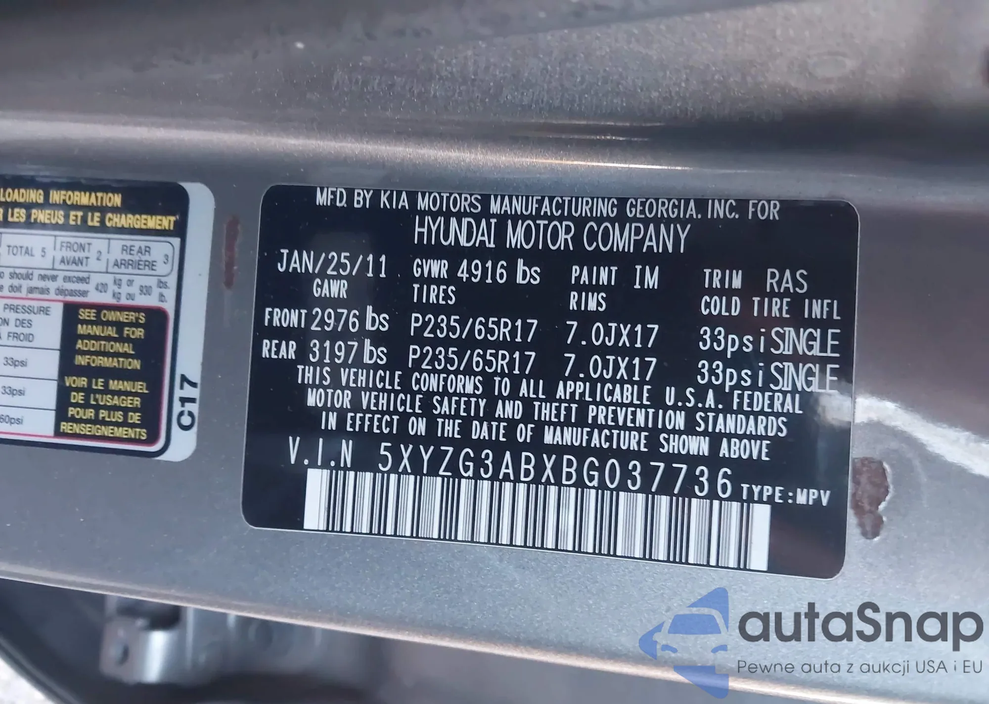 LOT: 43583371 VIN: KMHGC4DE3BU145981