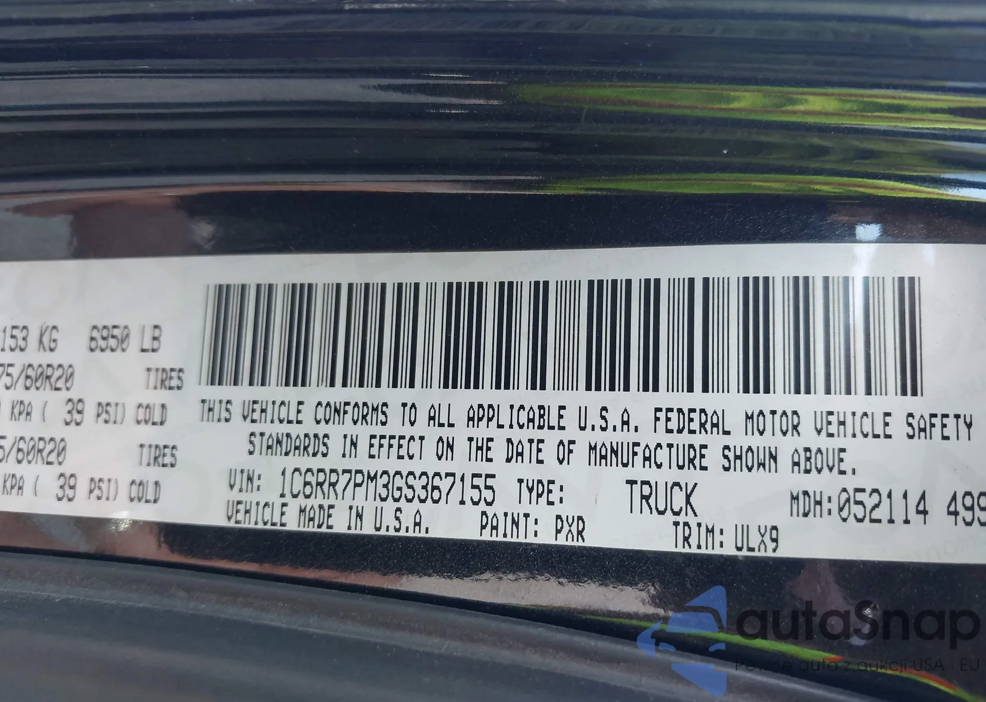 • VIN 1C6RR7PM3GS367155