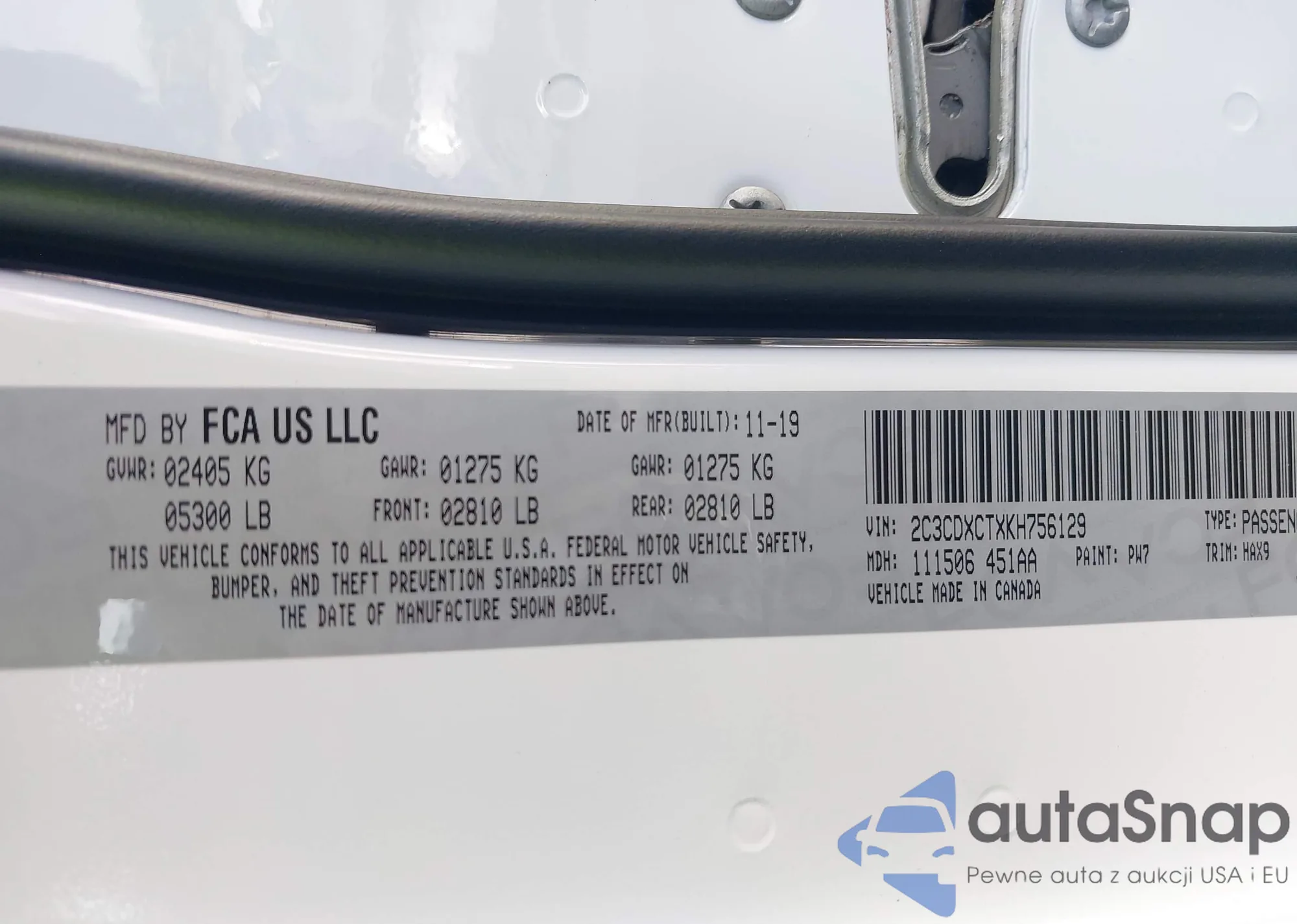 • VIN 2C3CDXCTXKH756129
