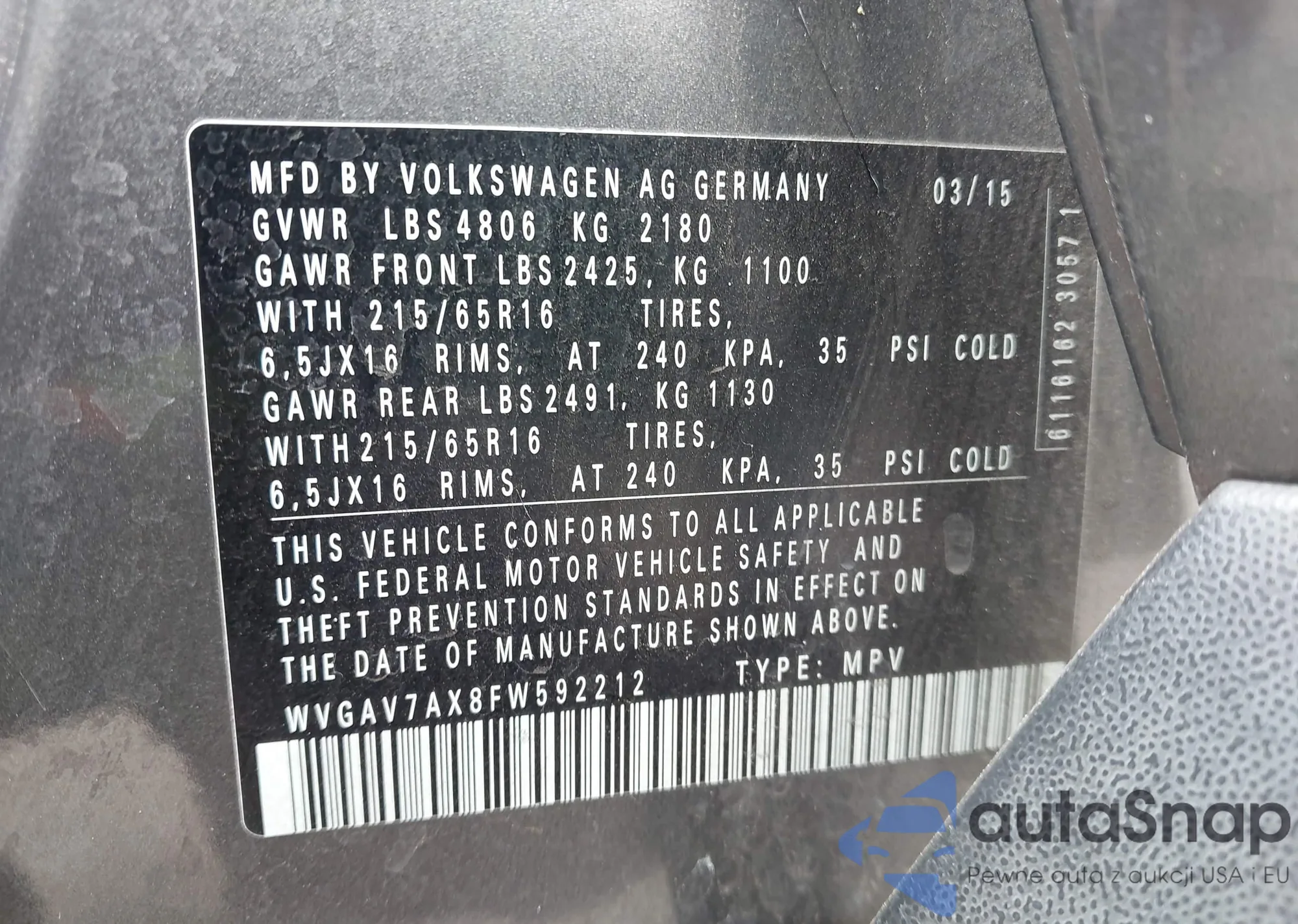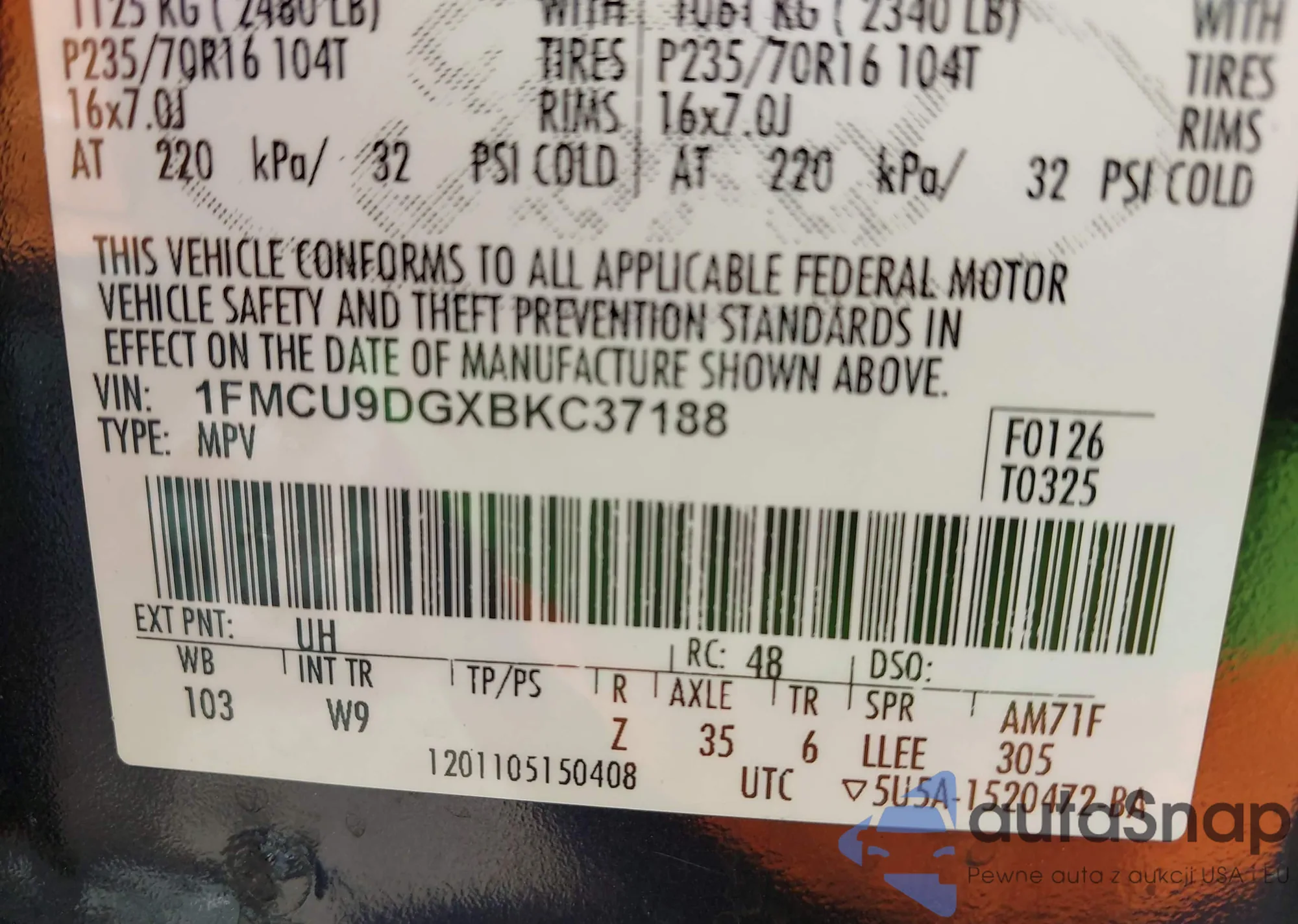 LOT: 43160402 VIN: WP0AH2A71KL147093