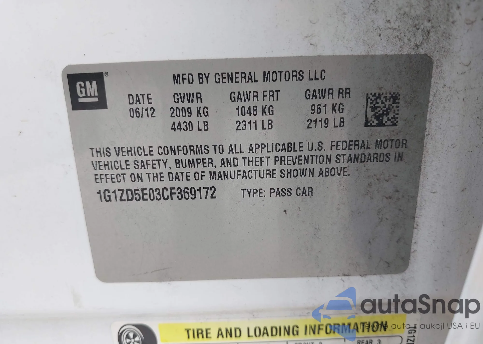 LOT: 43084805 VIN: 1G1ZD5E03CF369172