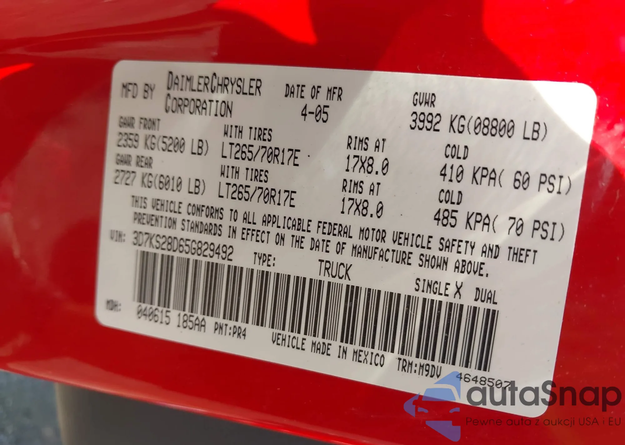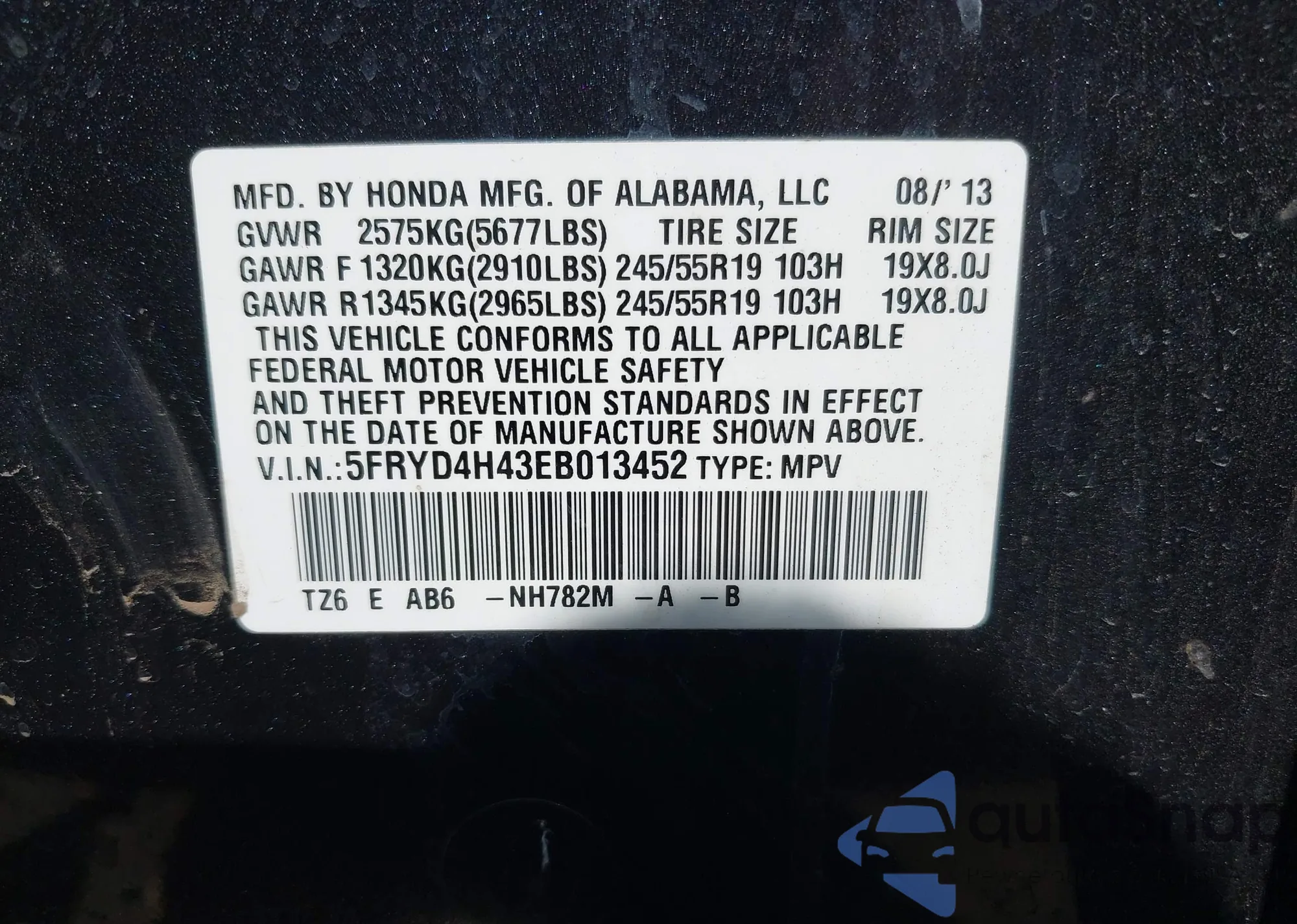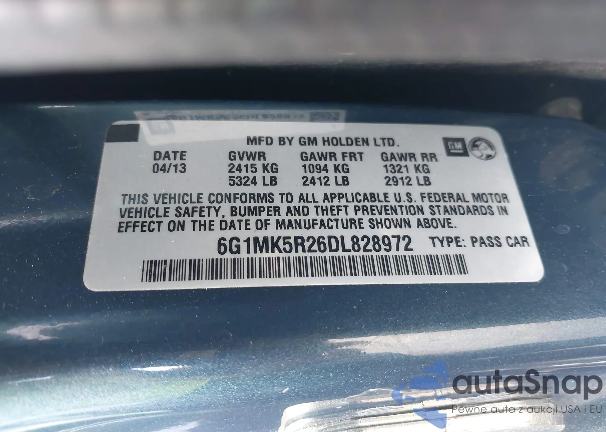 • VIN 6G1MK5R26DL828972