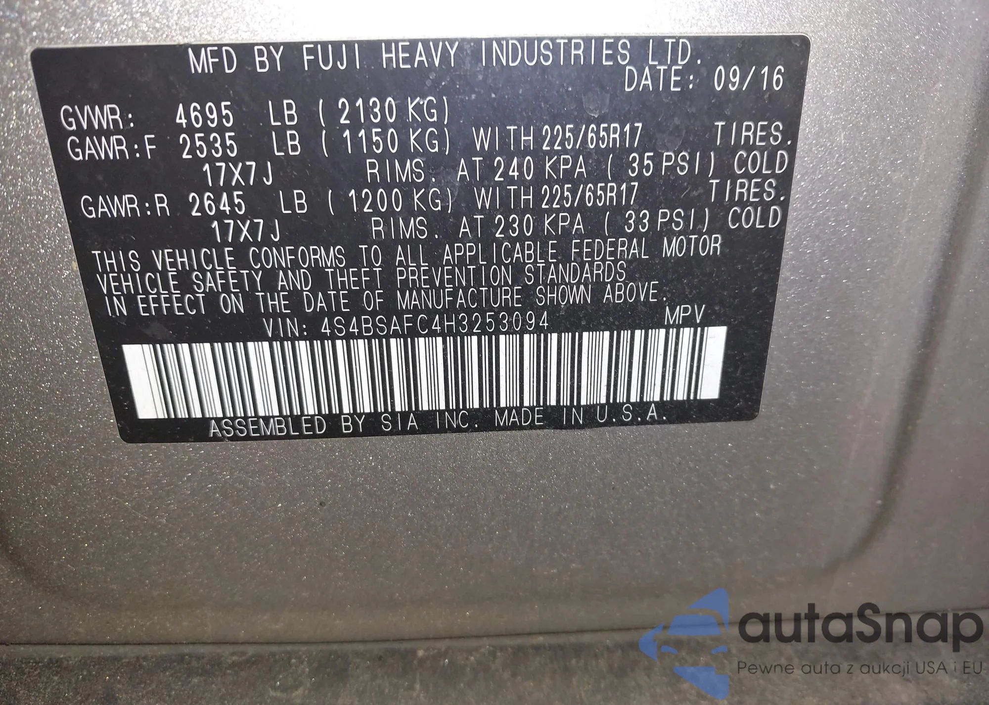 • VIN 4S4BSAFC4H3253094