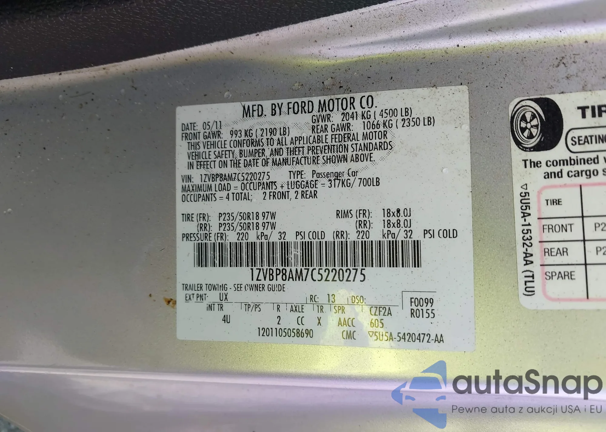 • VIN 1ZVBP8AM7C5220275