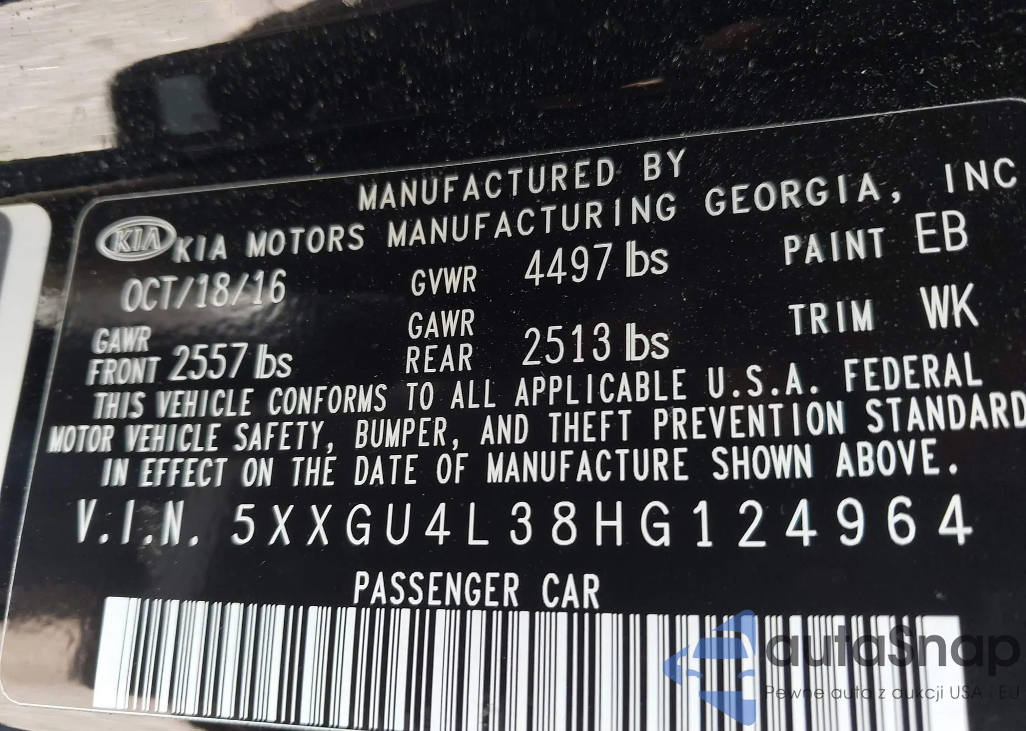 • VIN 5XXGU4L38HG124964