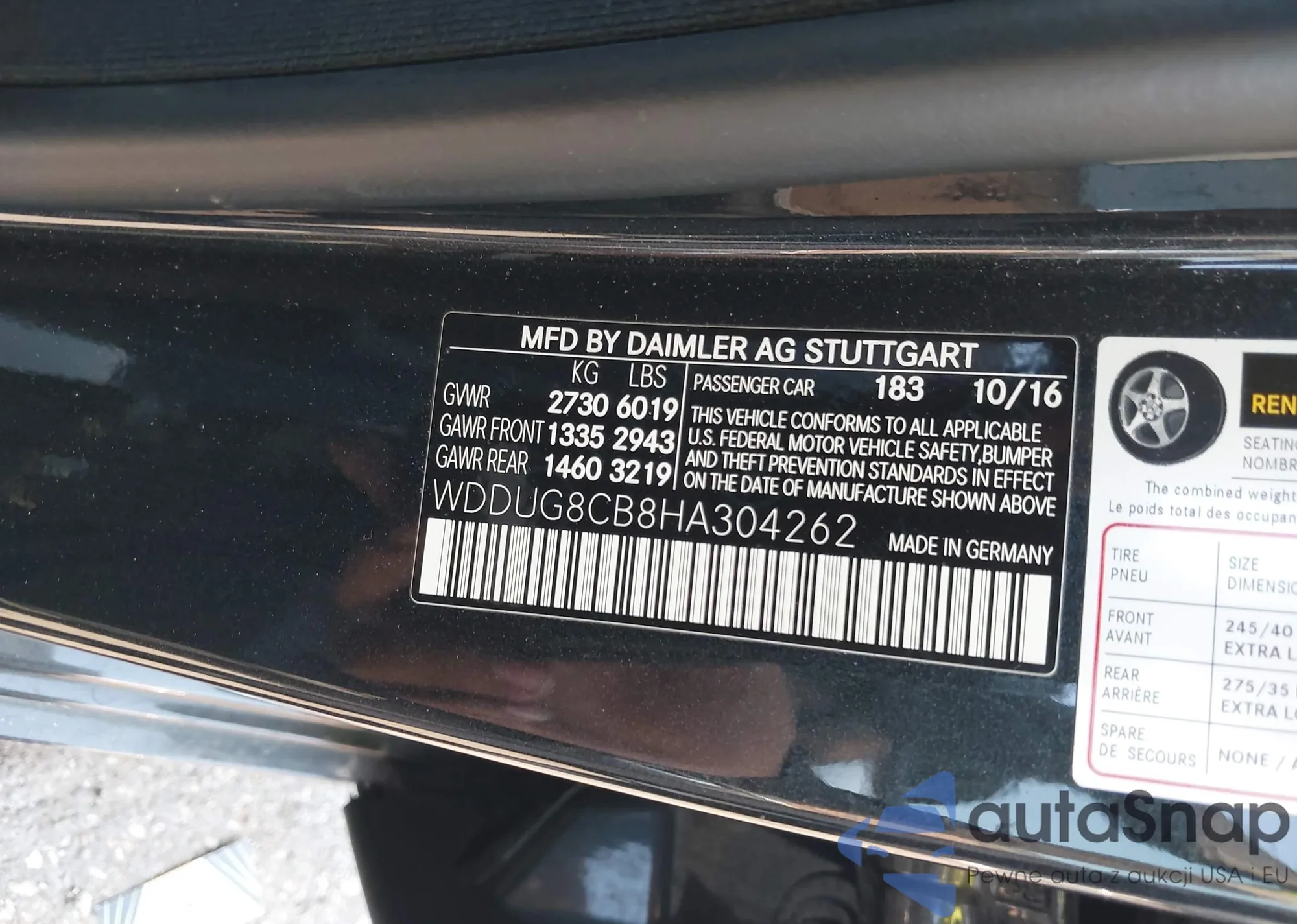 • VIN WDDUG8CB8HA304262
