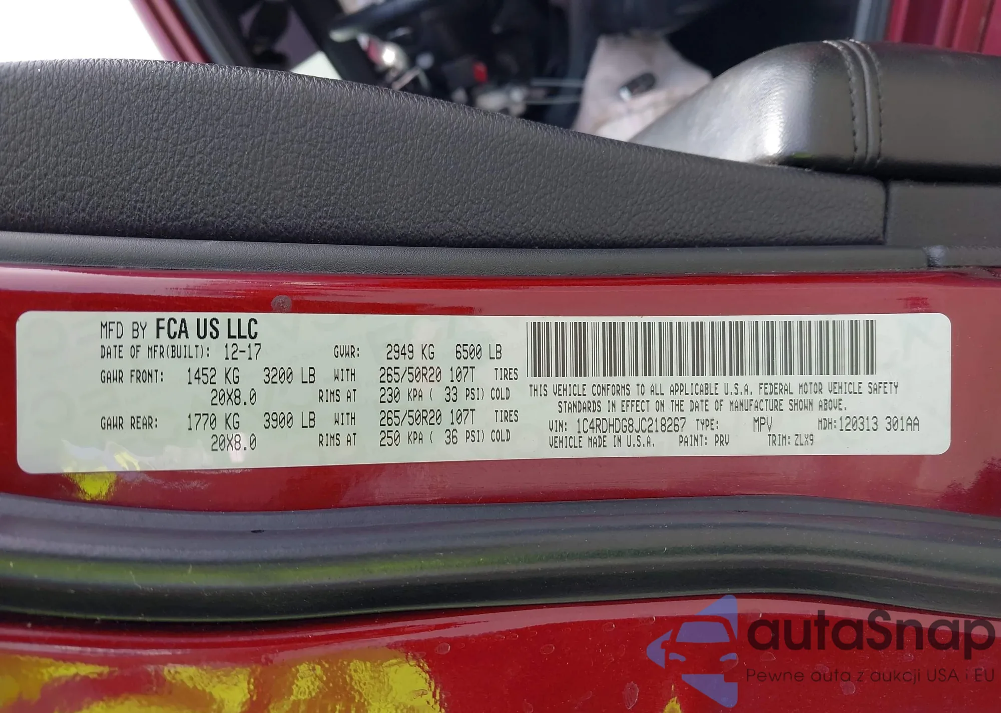• VIN 1C4RDHDG8JC218267