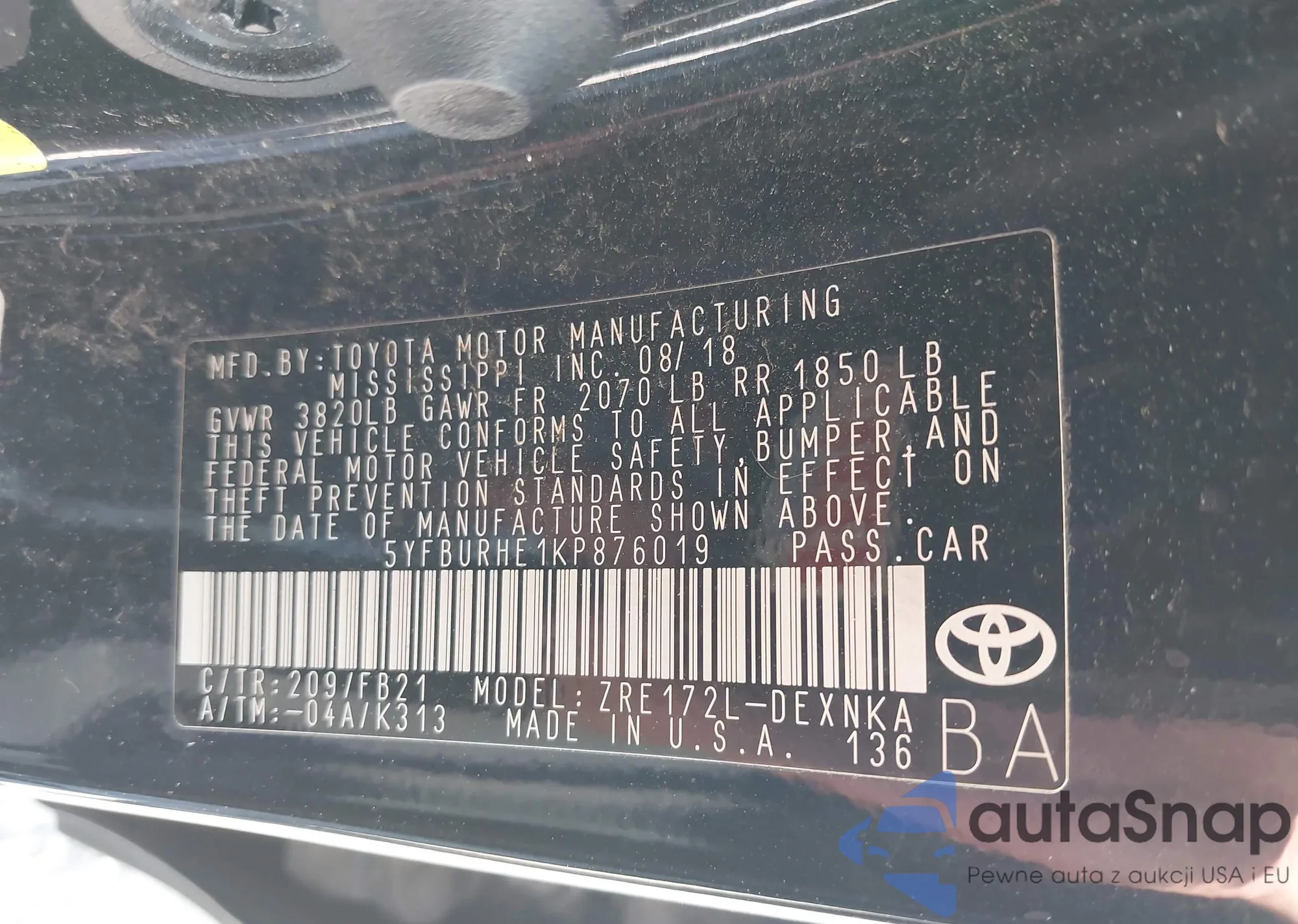 • VIN 5YFBURHE1KP876019