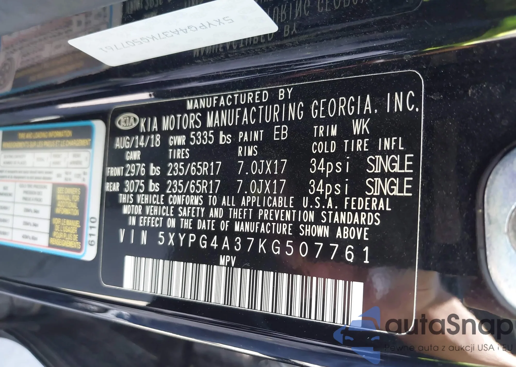 • VIN 5XXGT4L30KG282760