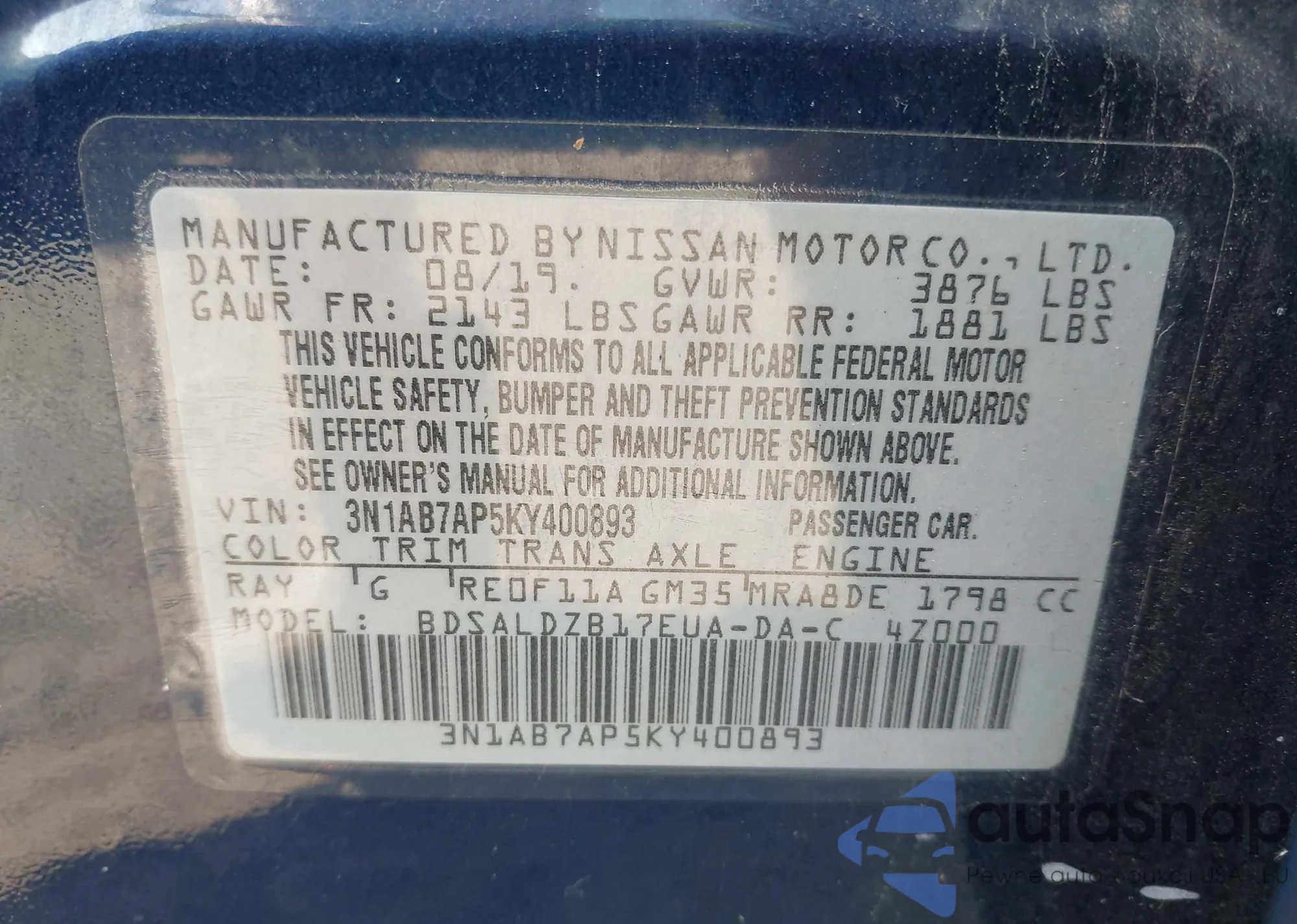 LOT: 43379832 VIN: WA1DGAFE5ED019045