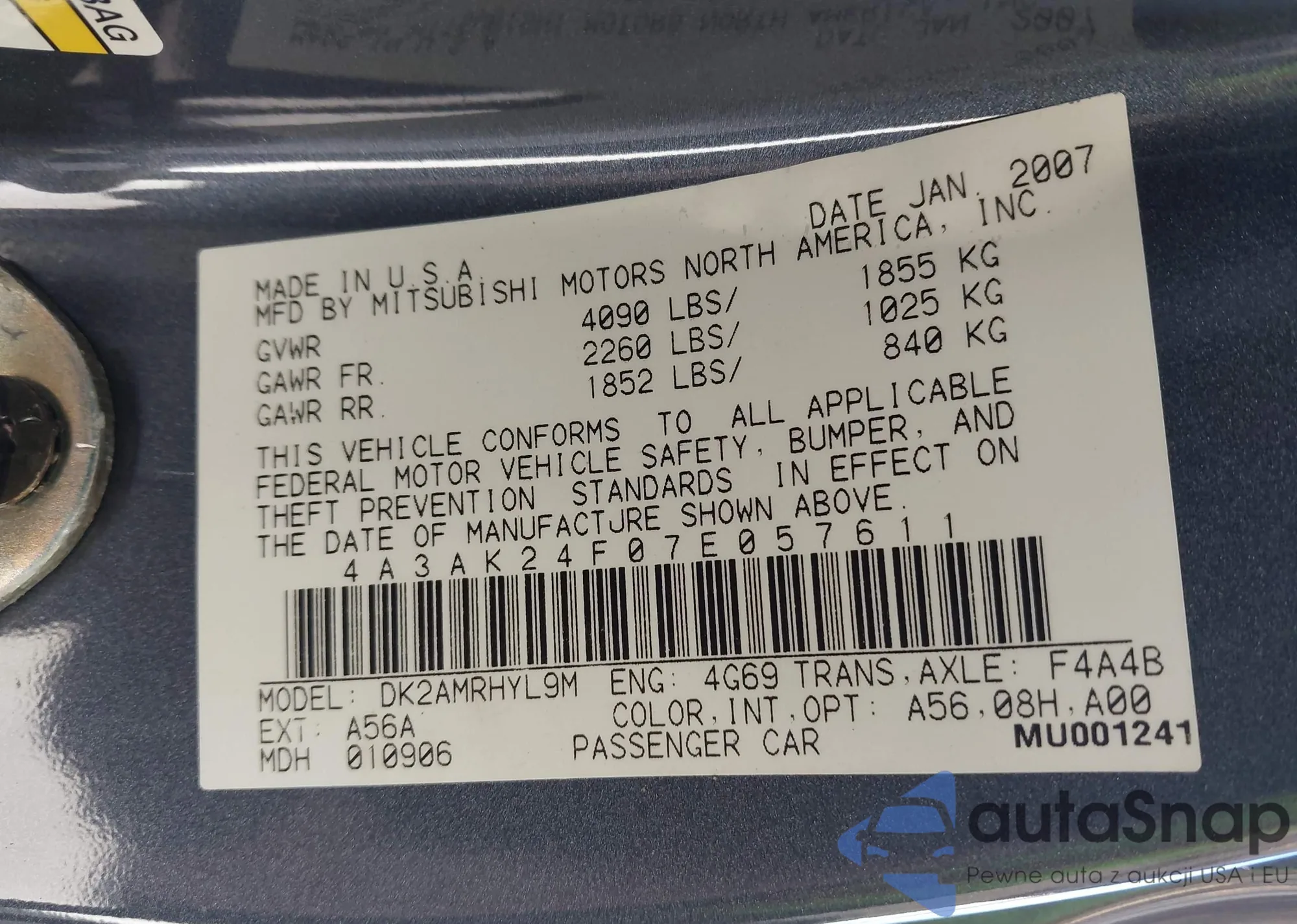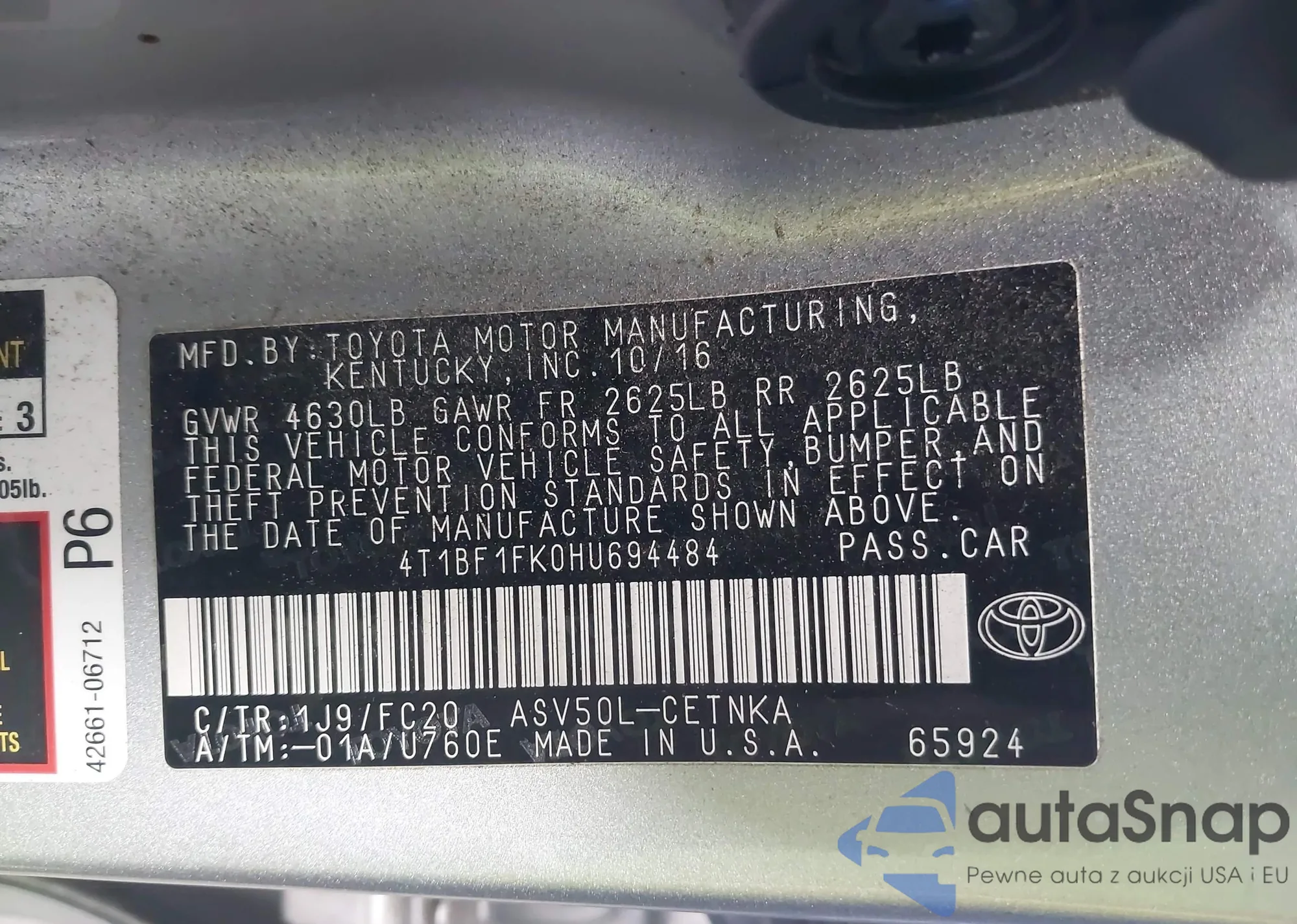 • VIN 4T1BF1FK0HU694484
