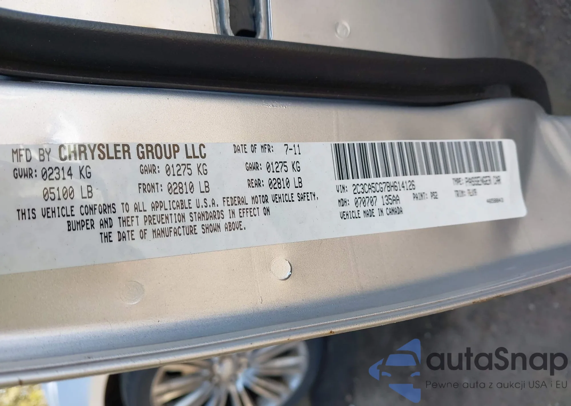 • VIN 2C3CA5CG7BH614126