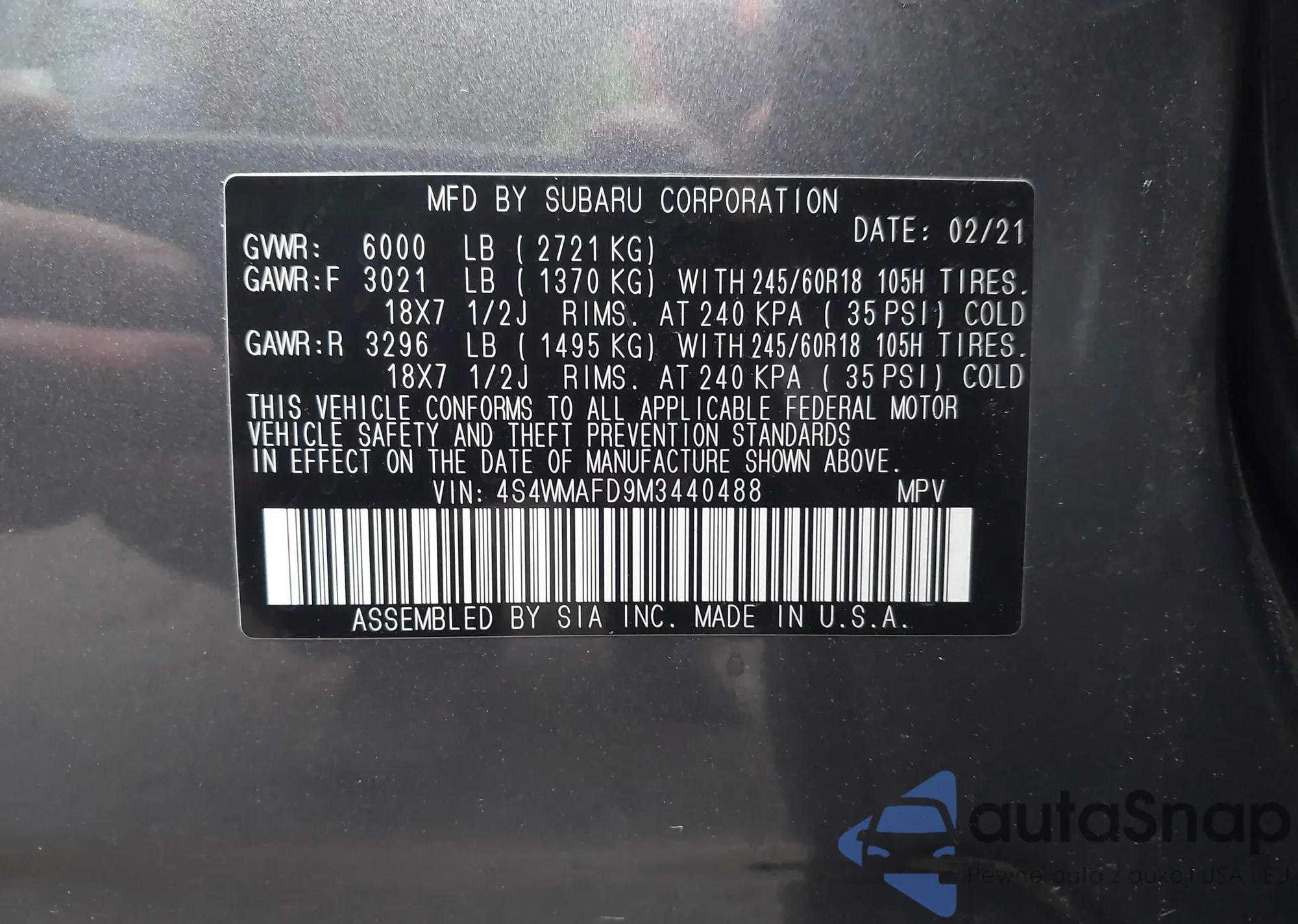 LOT: 43344663 VIN: JF2GPAVC8E8225991