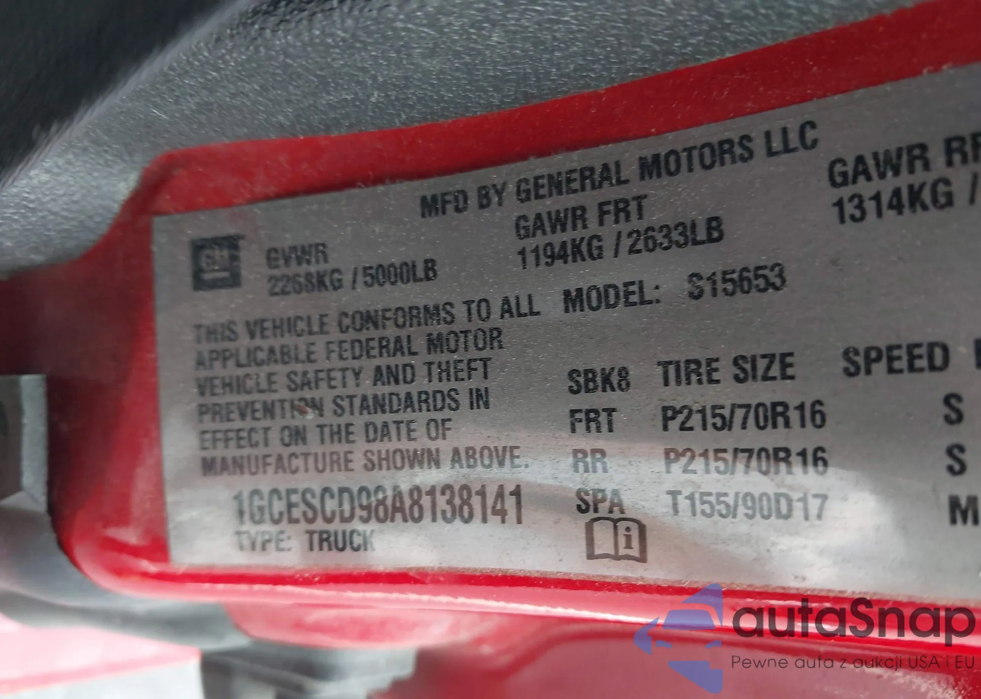 • VIN 1GCESCD98A8138141