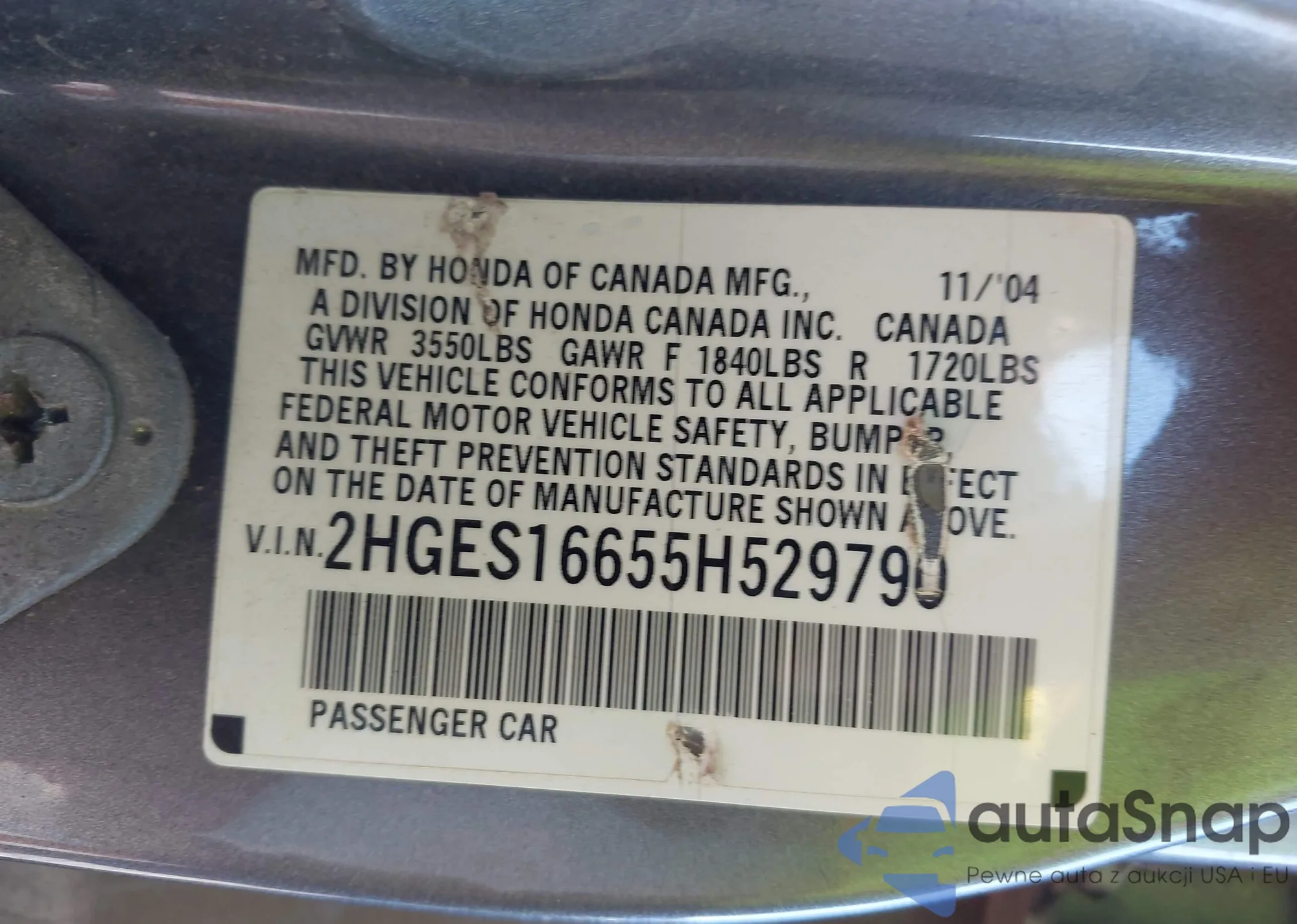 • VIN 2HGES16655H529790