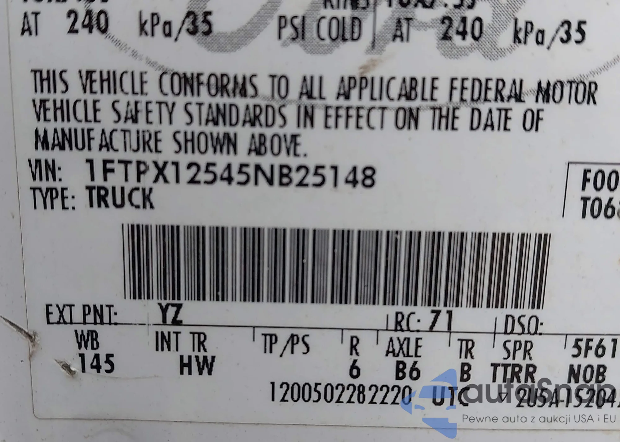 • VIN 1FTPX12545NB25148