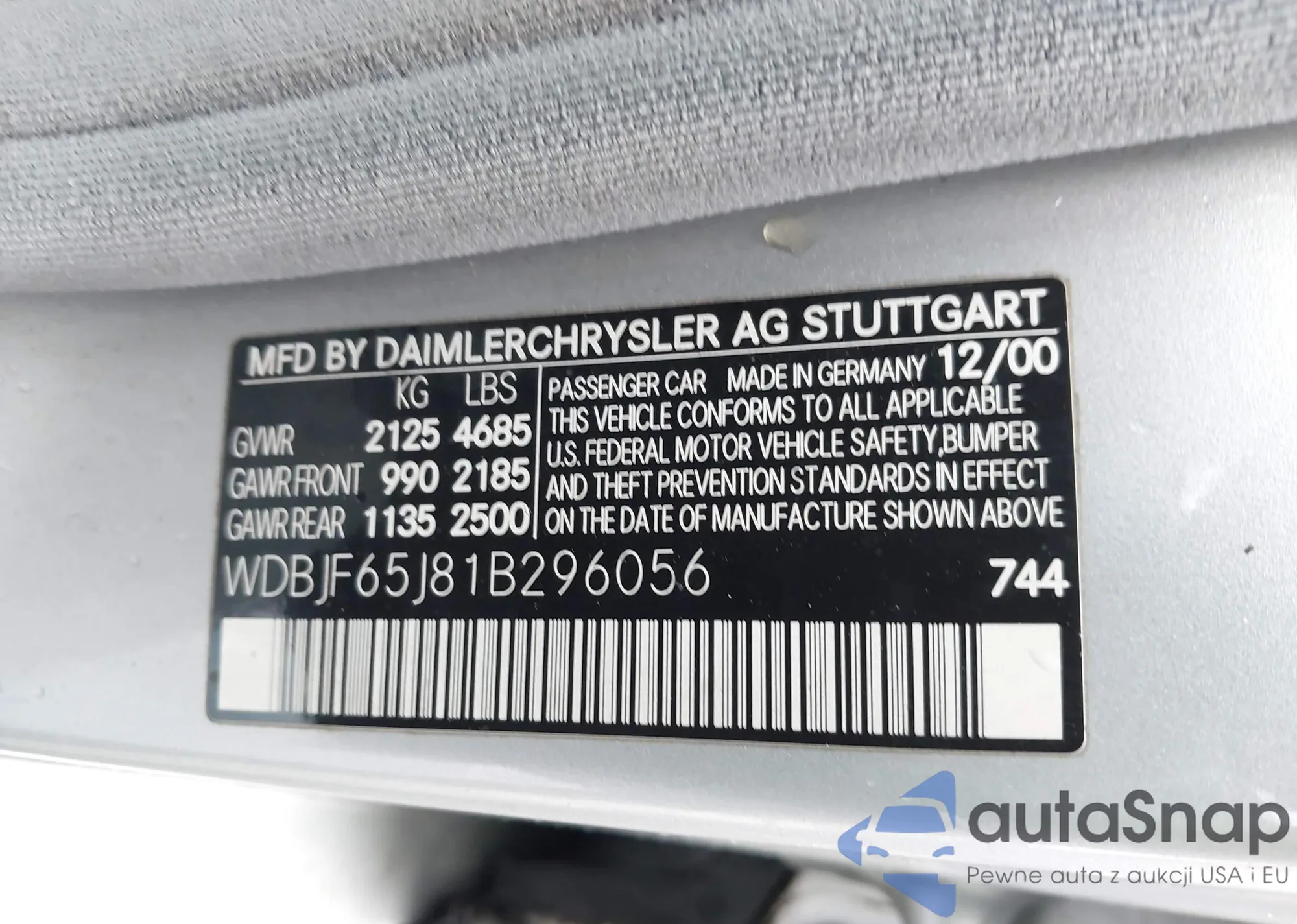 • VIN WDBJF65J81B296056