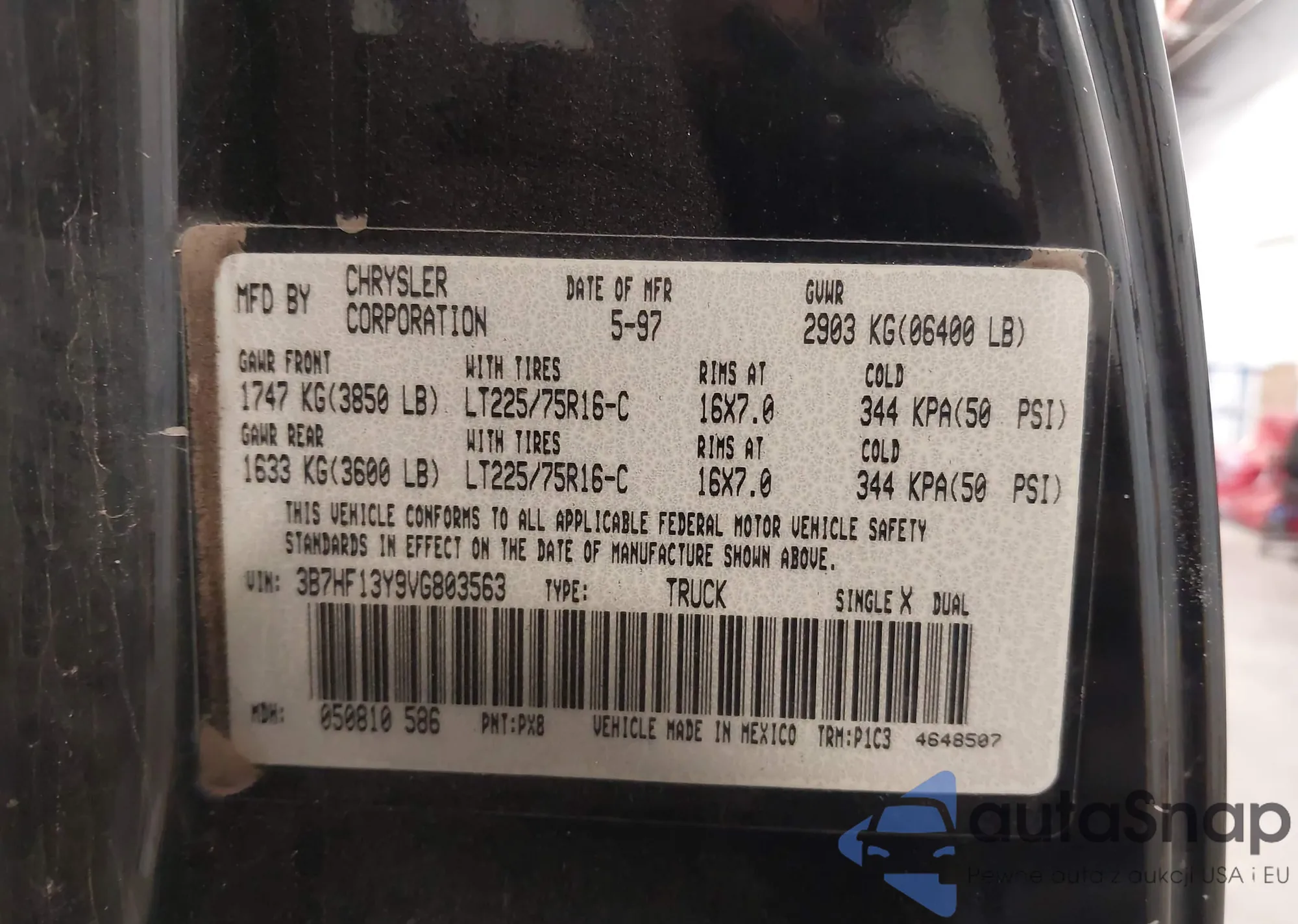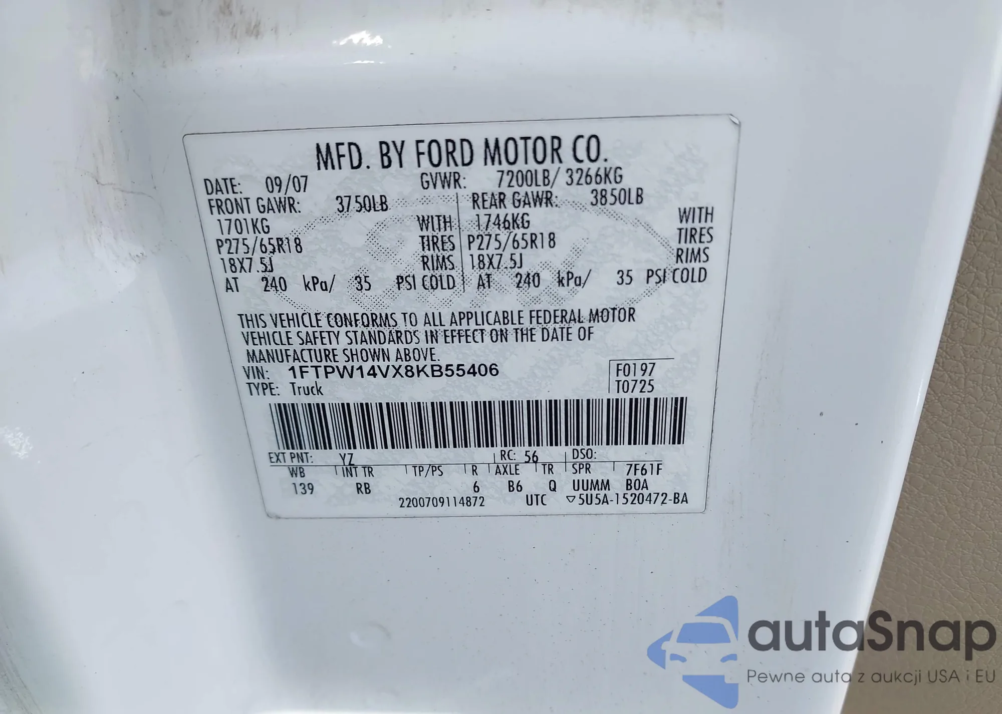 LOT: 43487456 VIN: 1FTPW12545KB91039