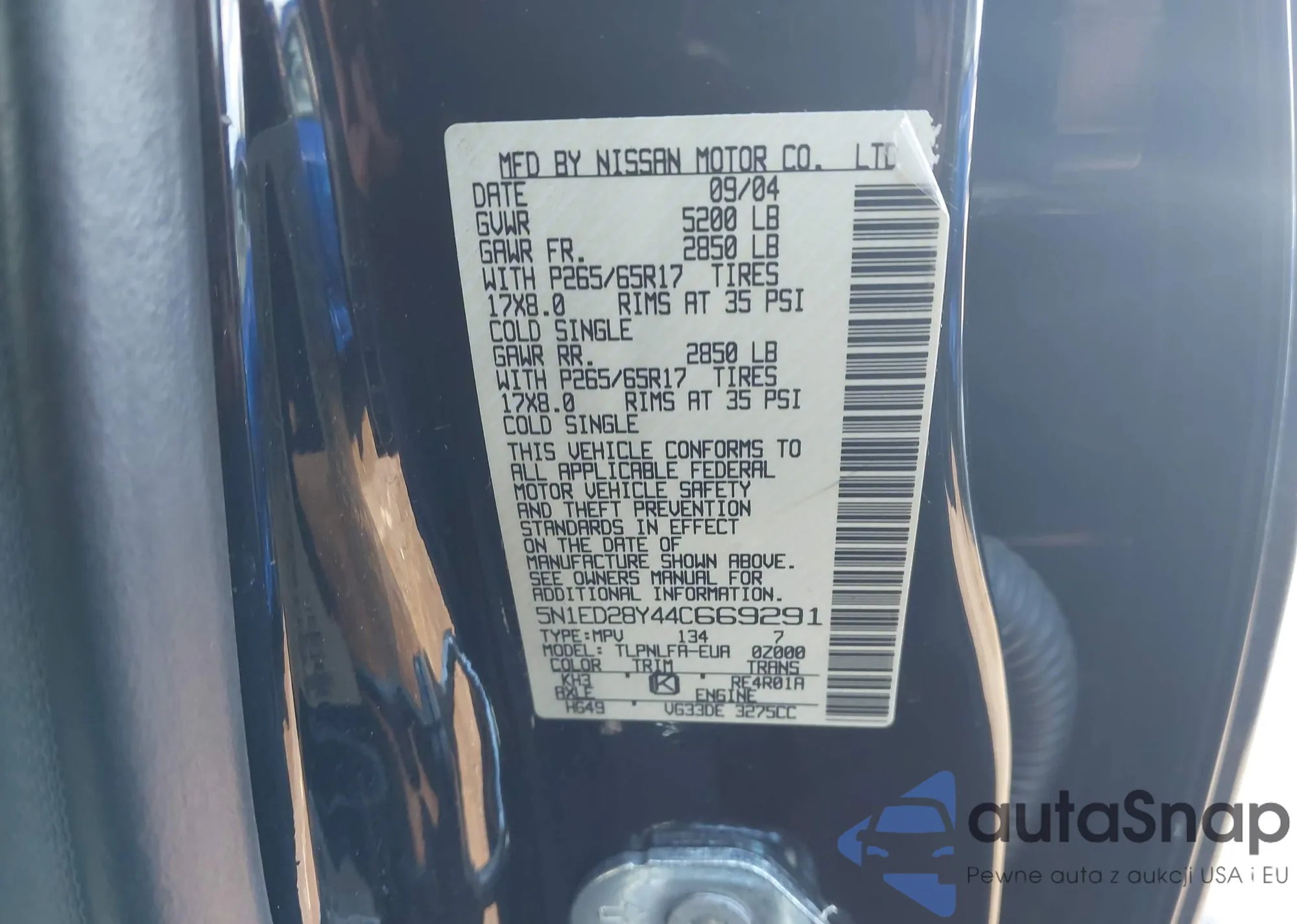 • VIN 5N1ED28Y44C669291