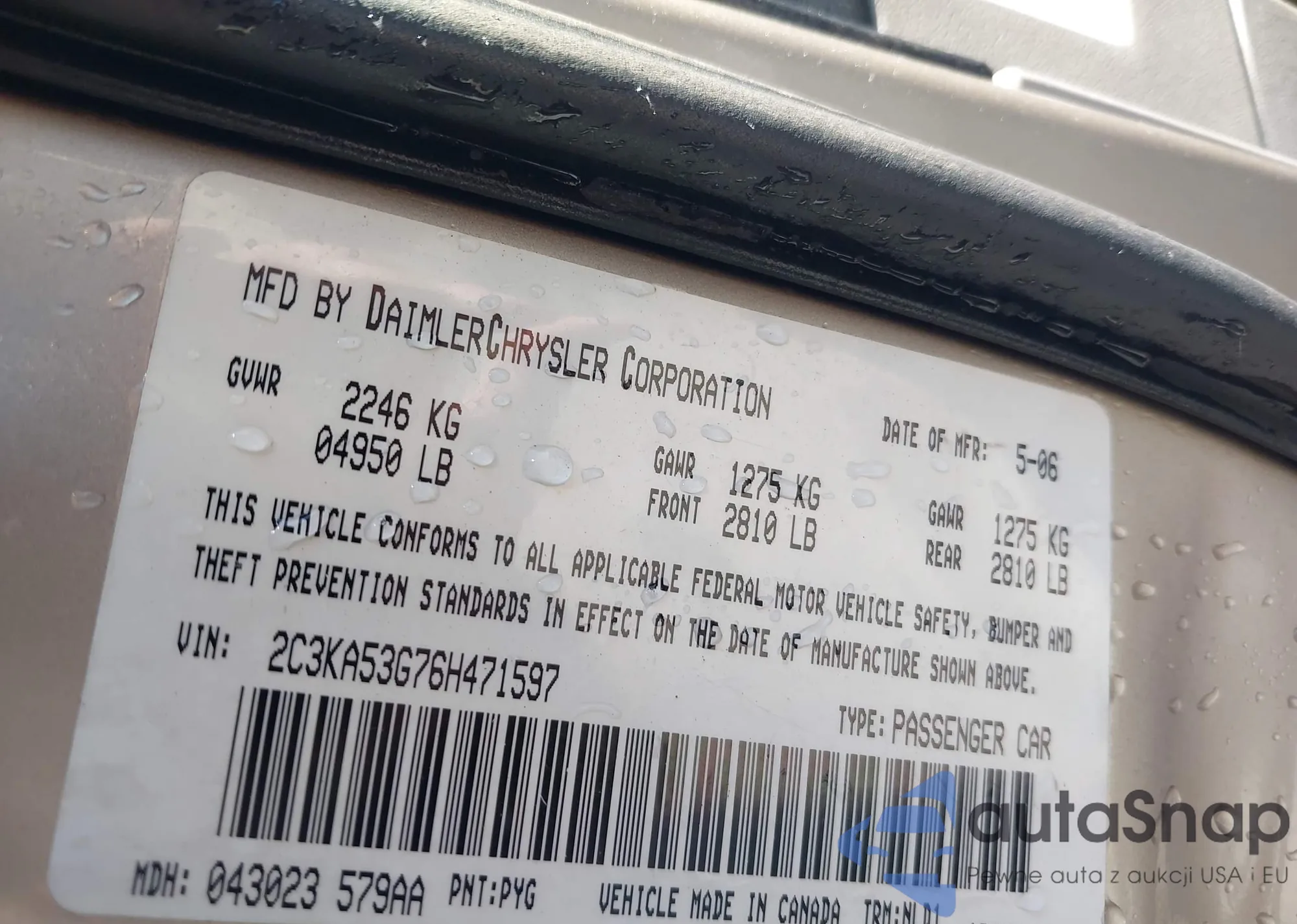 • VIN 2C3KA53G76H471597