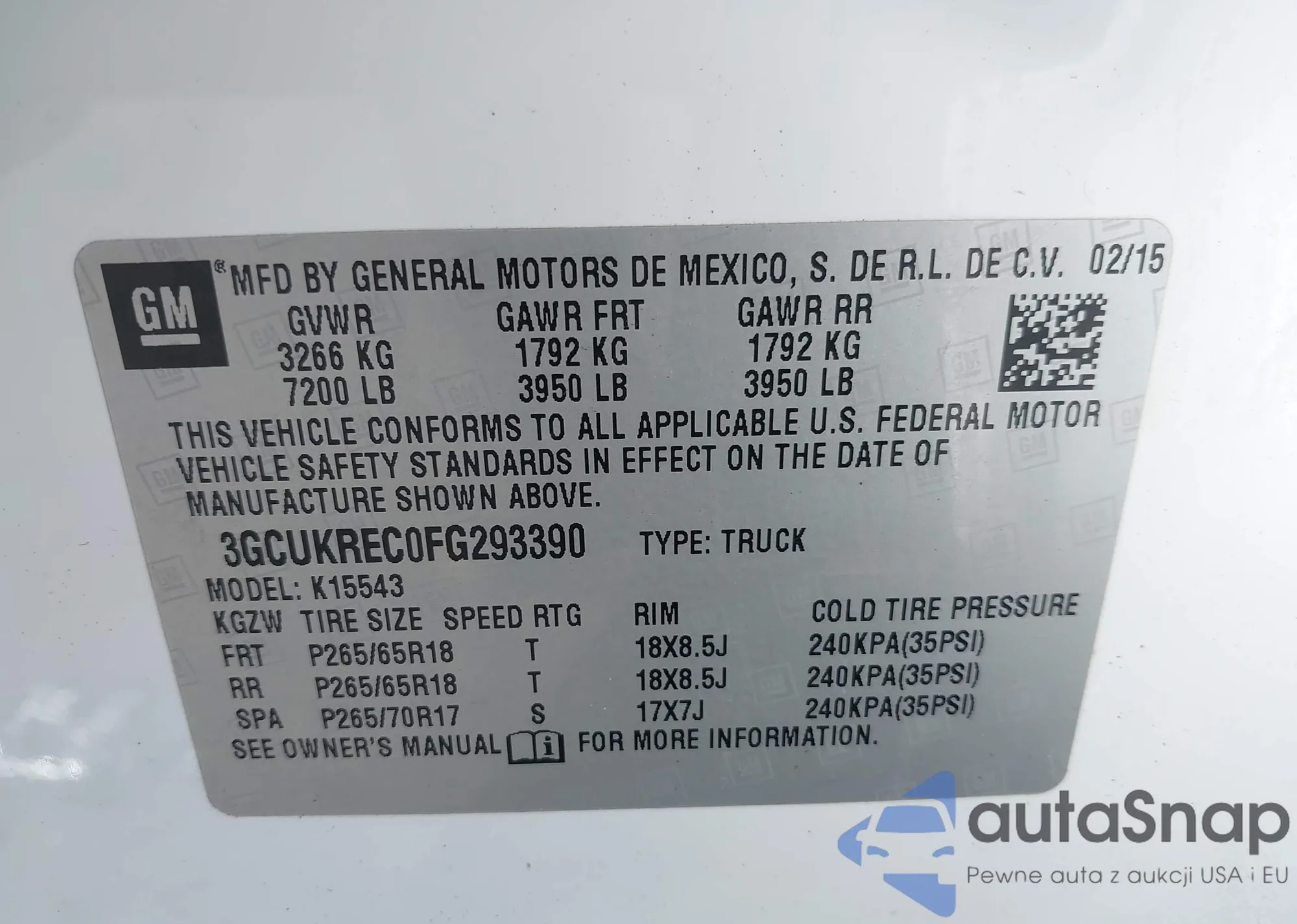 • VIN 3GCUKREC0FG293390