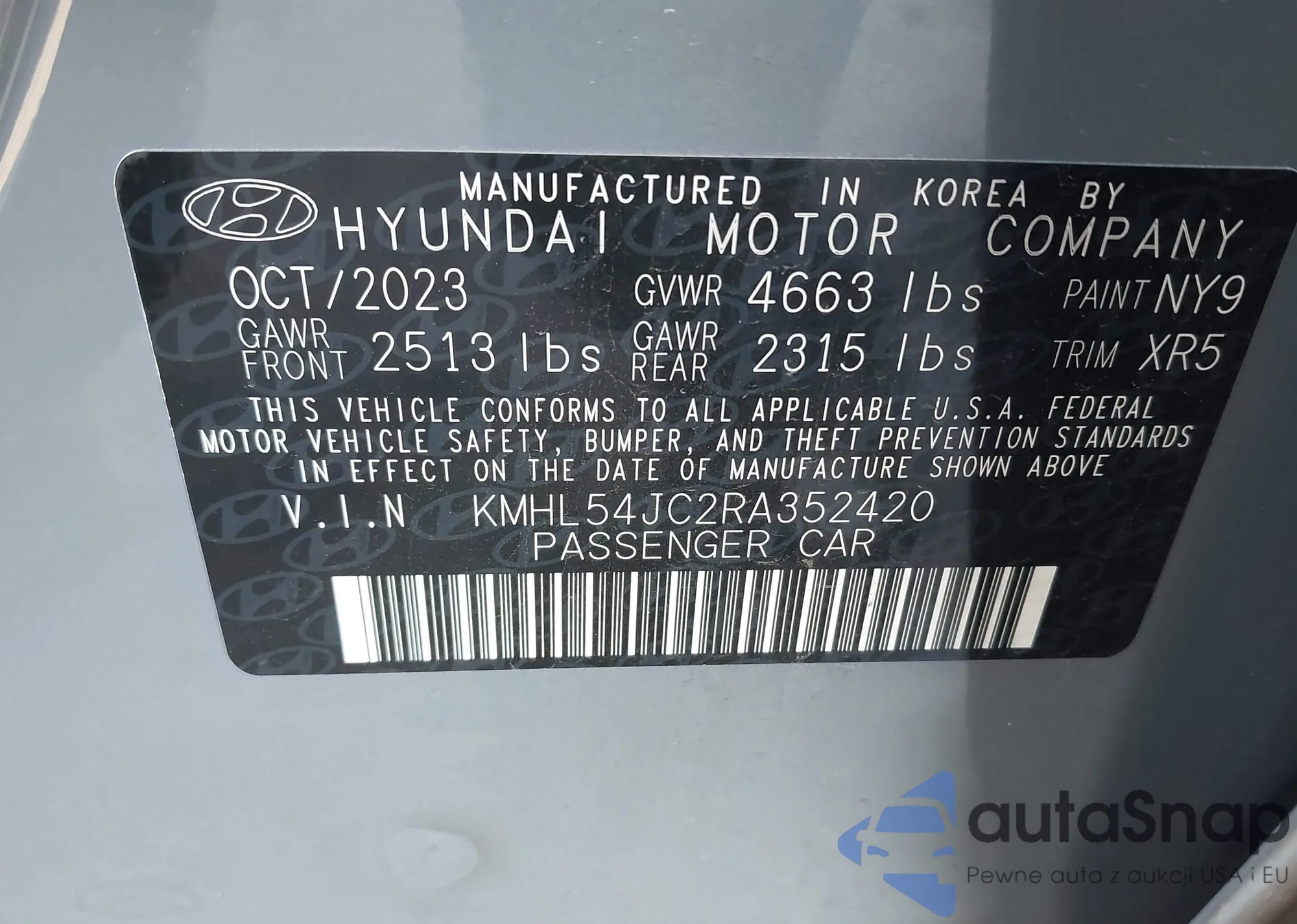 • VIN KMHL54JC2RA352420
