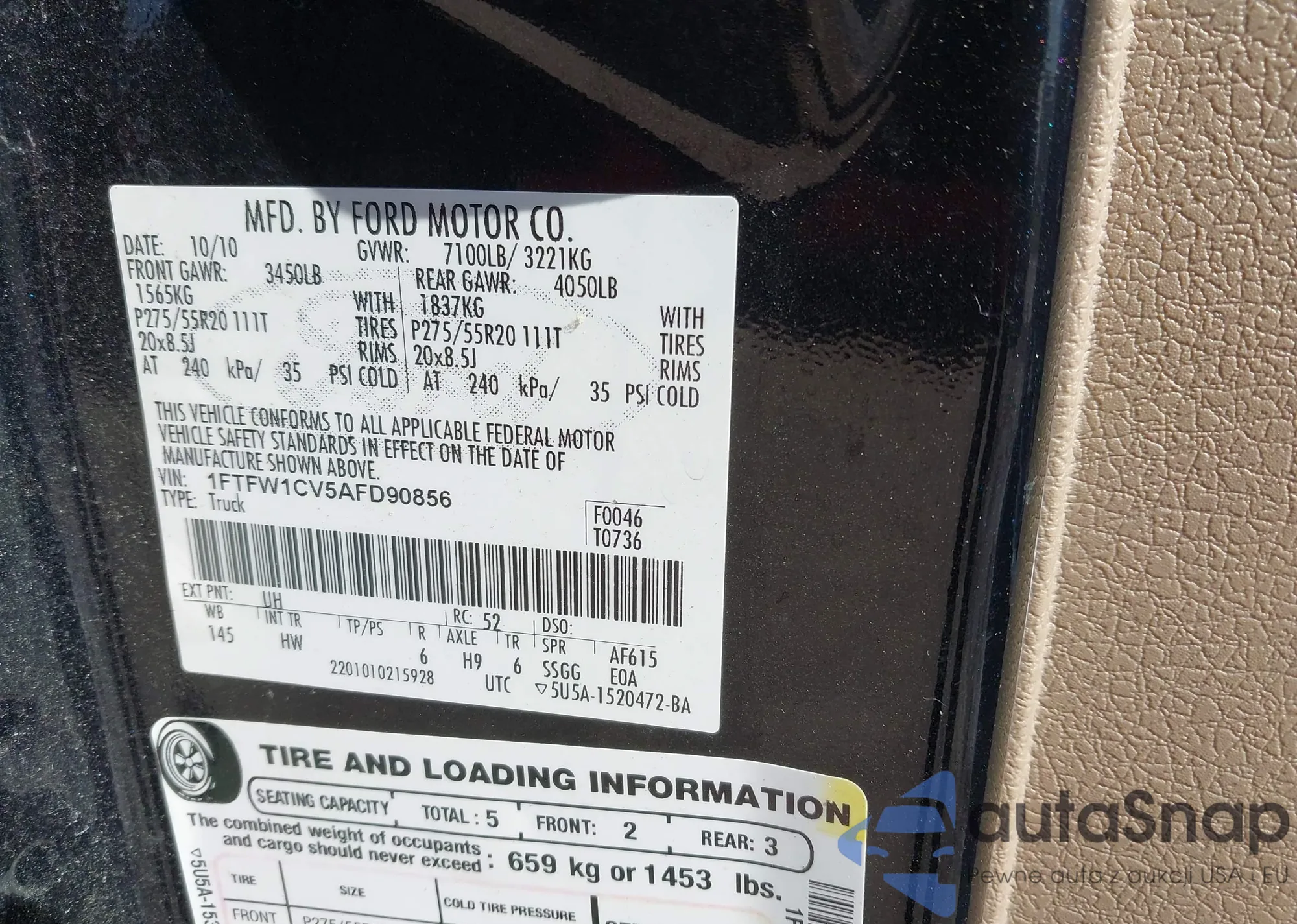 • VIN 1FTFW1CV5AFD90856